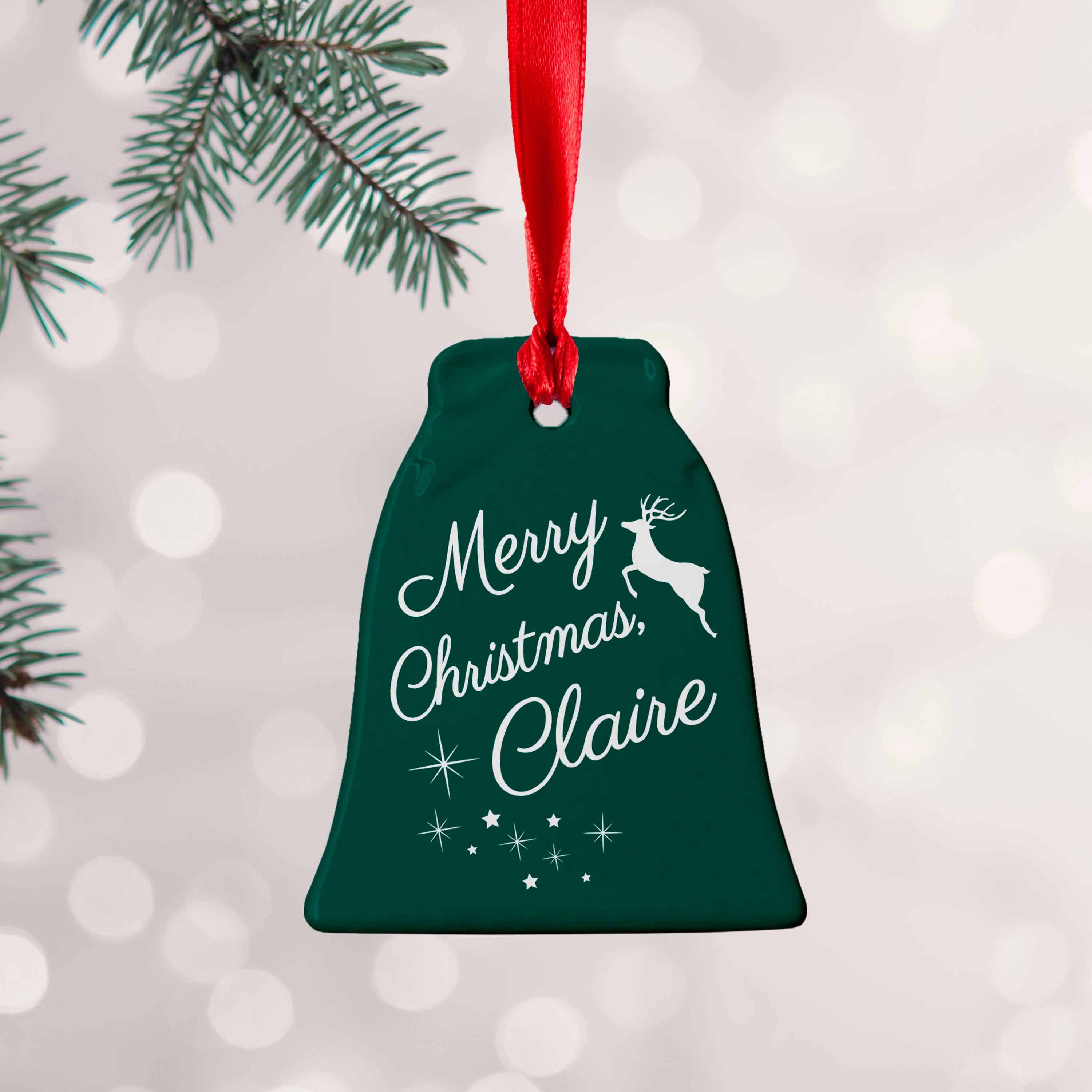 What makes this ornament truly special is the personal touch. ‘Merry Christmas [Name]’ comes as standard text in a white script style font on a Christmassy green background. The design also features a beautiful deer icon, whilst the stars add a touch of quality to this wonderful decorative piece.