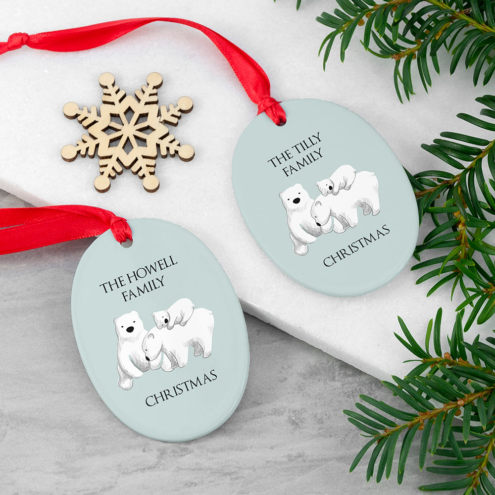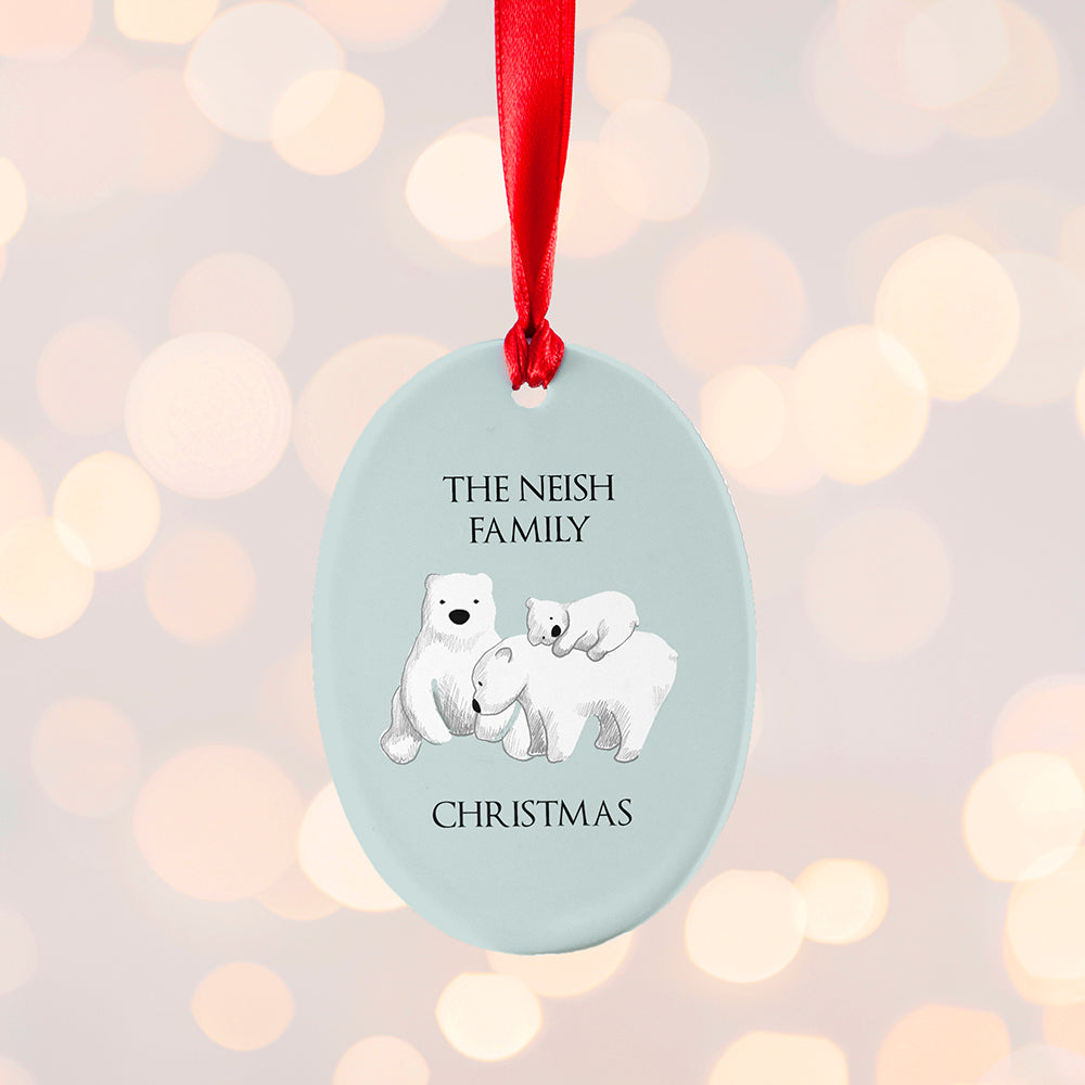 A great way to show your loved ones how much you care, our gorgeous personalised sentimental polar bear oval ornament would make a beautiful family Christmas present that you’ll proudly display on your Christmas tree every year. This sweet ornament is perfect for decorating your Christmas tree and makes a lovely addition to any Christmas display, it's sure to bring a smile to their face every time they see it!