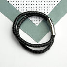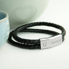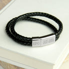 Personalised Men's Dual Leather Woven Bracelet in Black