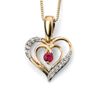 Luxury 9ct Gold Diamond Set Heart Pendant Necklace with Ruby