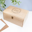 Our keepsake boxes are crafted from wood, making them sturdy and durable, and they each have a latch hook, to keep everything secure inside. Available in three sizes, there’s plenty of space to store whatever they want, and the botanical wreath design engraved on the lid adds a touch of elegance.