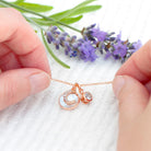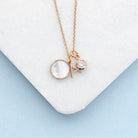 Rose Gold Initial Necklace with Mother of Pearl and Crystal Charms