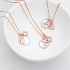 Elegant and unique, our beautiful personalised rose gold initial necklace adorned with a Mother of Pearl disc and crystals will make the perfect gift for her.