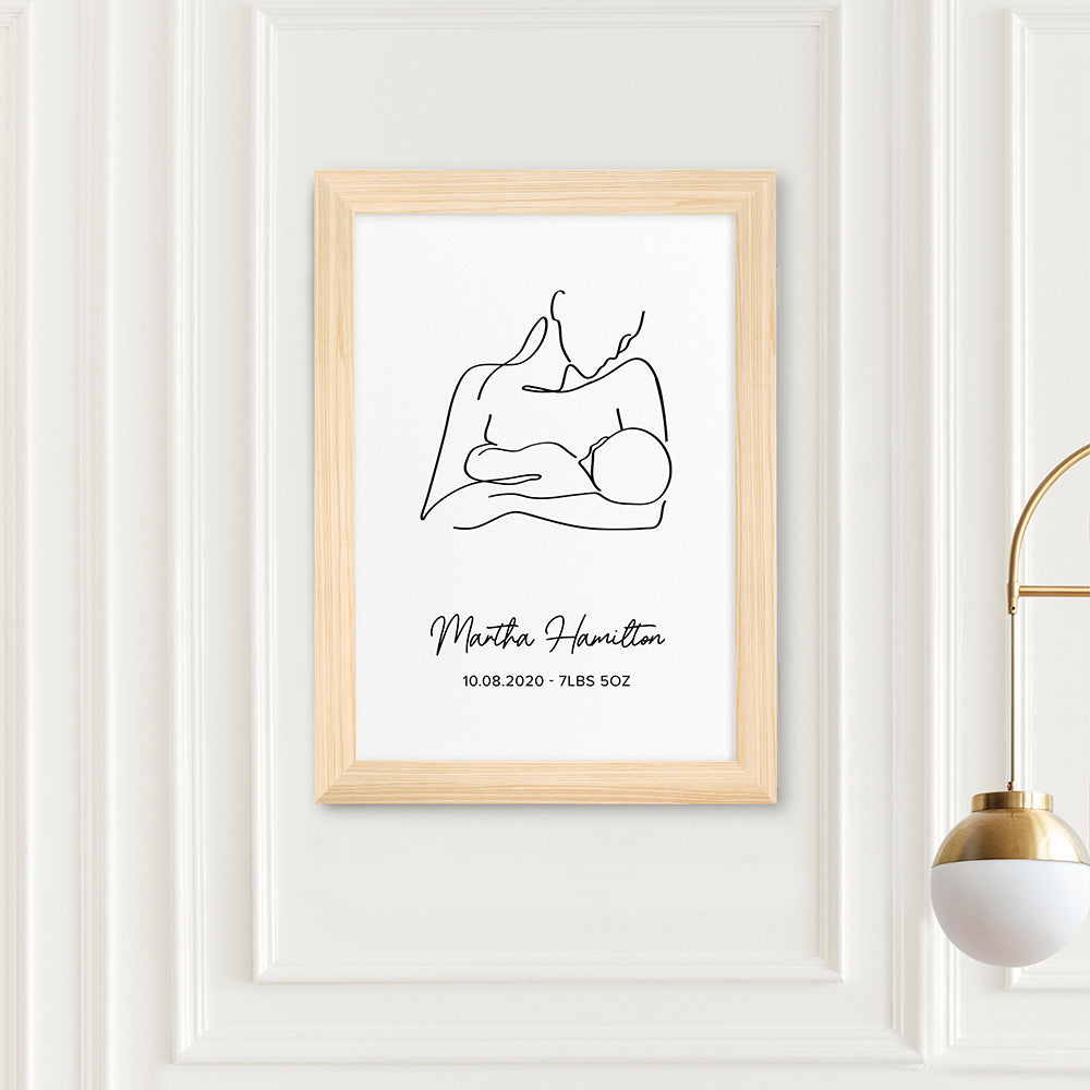 Personalised Line Art New Mum and Baby Feeding Print