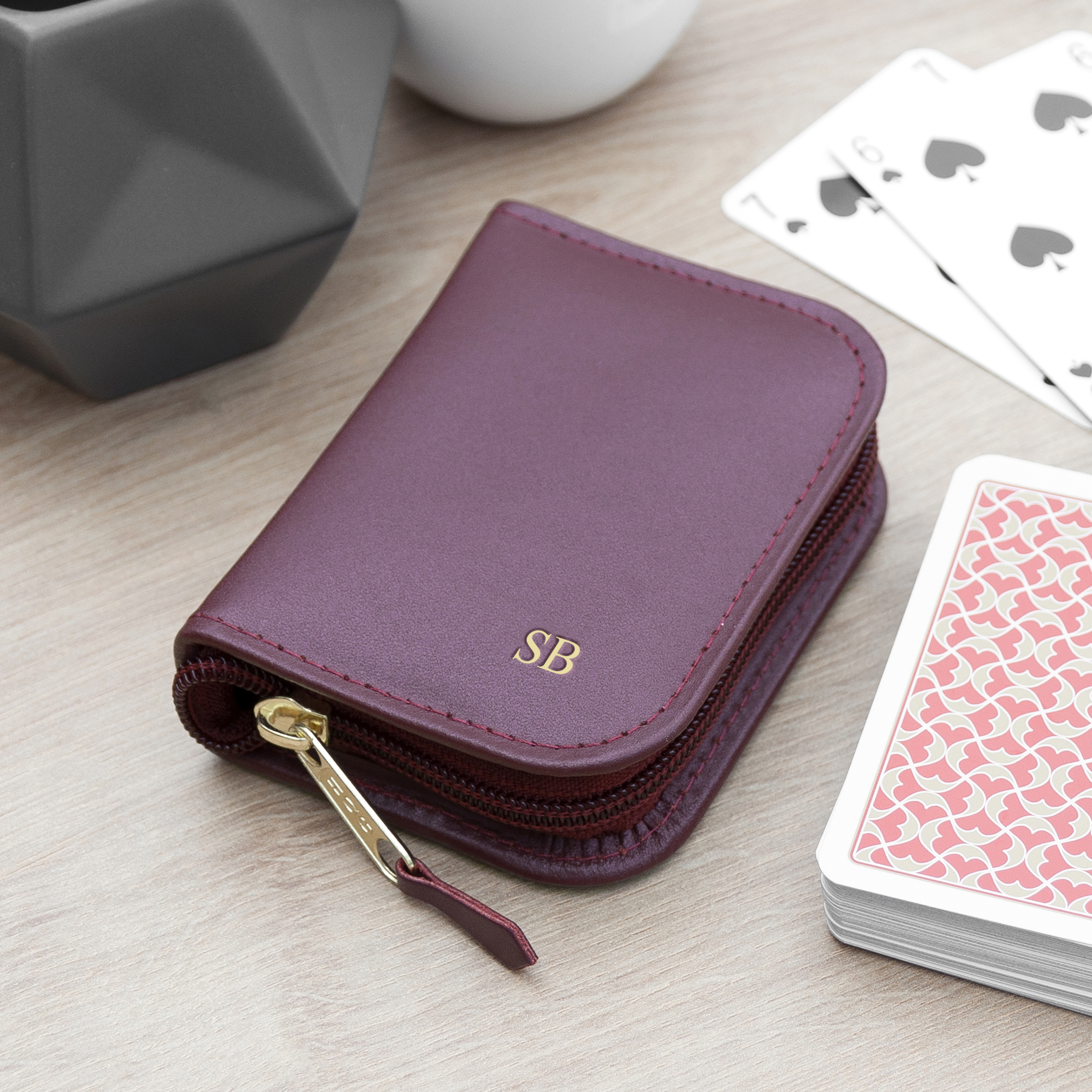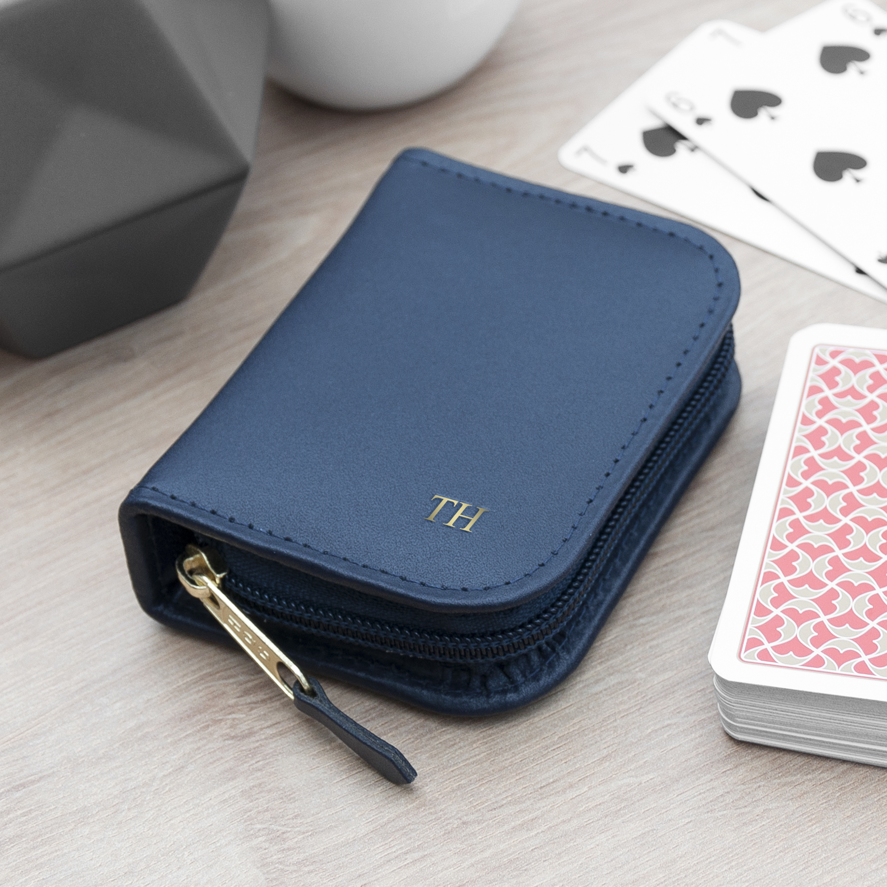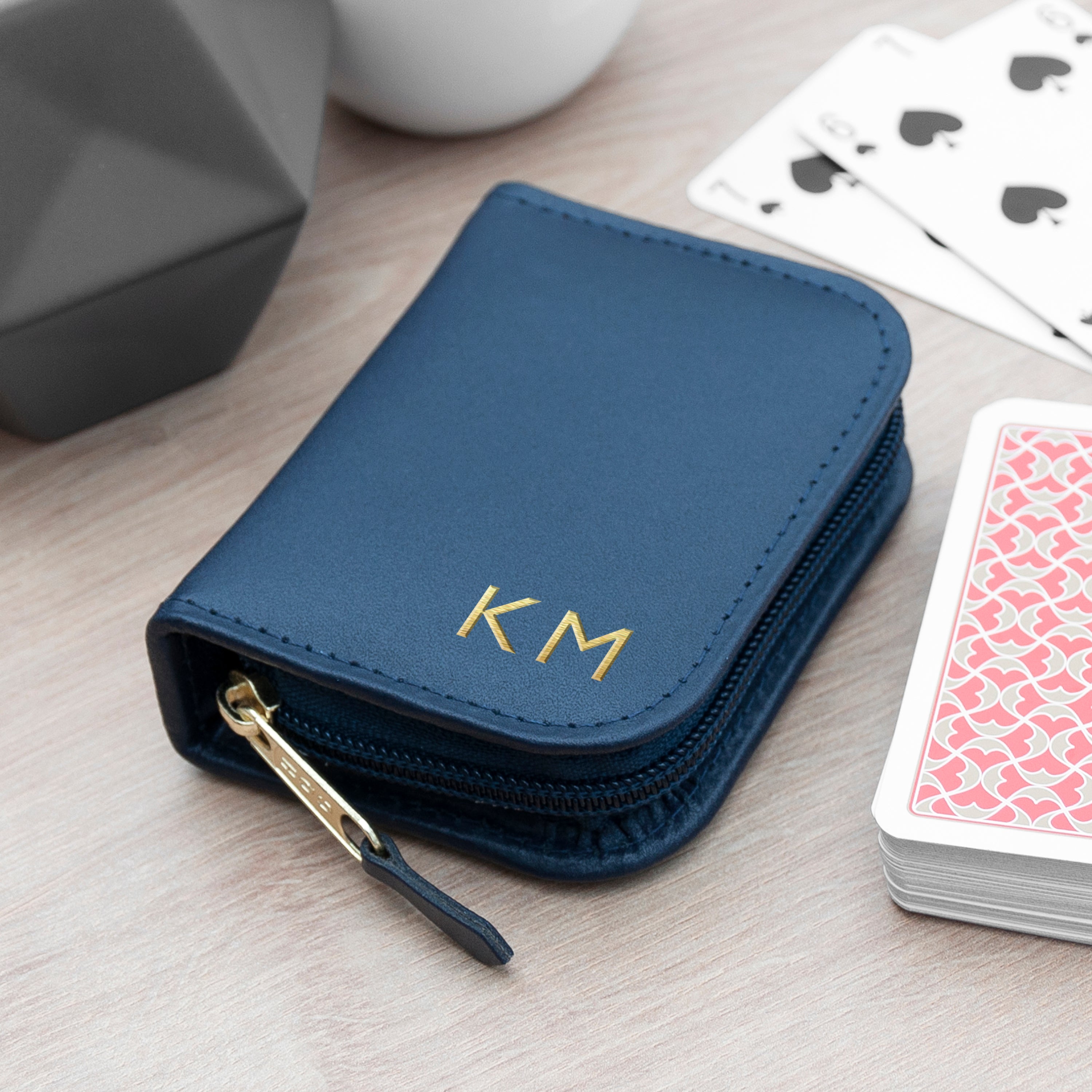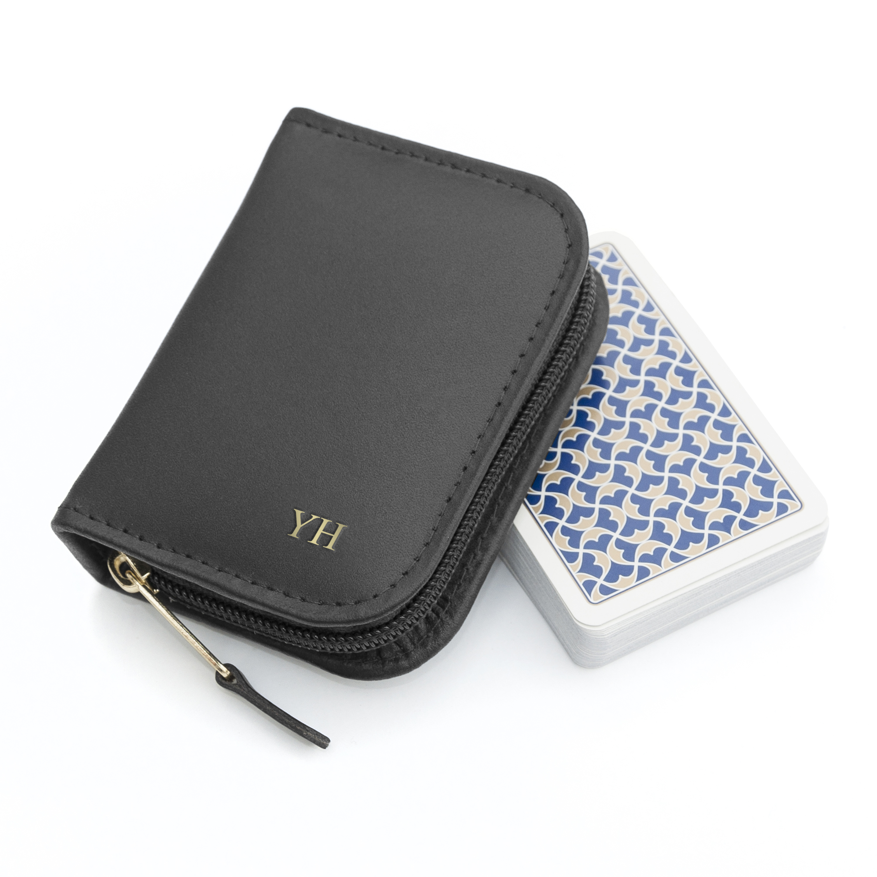 Personalise this playing cards case with your loved one's initials and our specialist team of artisan creatives will add it to the cover of your case in stunning gold foil, which will add a touch of luxury and sentimentality to this card carrier.