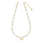 Expertly crafted from durable brass and plated with a radiant combination of gold and silver, this premium quality necklace boasts a striking two tone finish that ensures effortless versatility. Each elongated oval link alternates between warm gold plating and cool silver plating, creating a balanced interplay of tones that adds depth and visual intrigue to the design. The alternating links are joined with small, refined connectors, giving the piece a rhythmic flow and polished symmetry that enhances its graceful drape around the neckline.