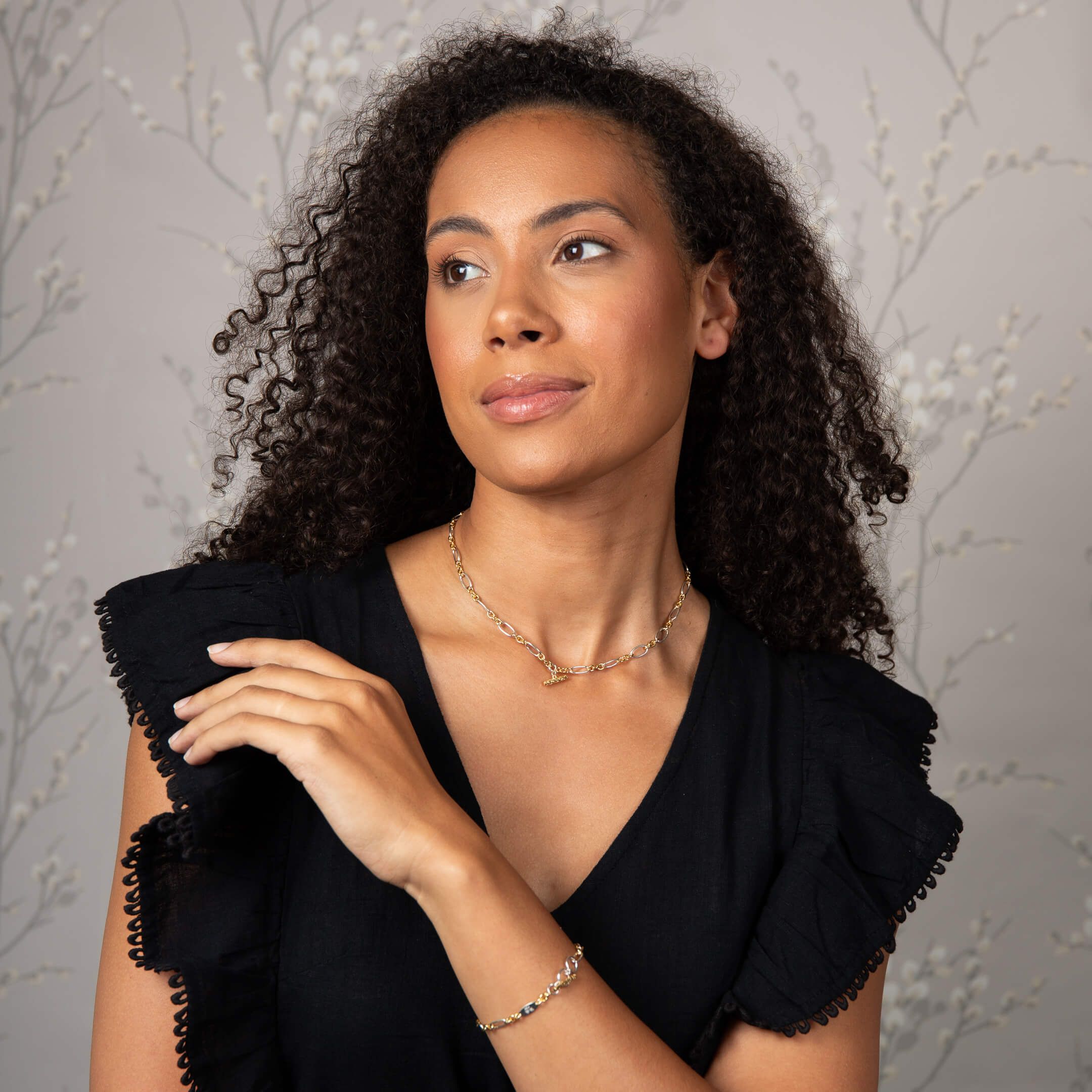Adjustable in length with its lobster claw clasp, this sensational ladies neckwear accessory offers flexibility to complement a range of necklines and occasions, from casual daytime wear to sophisticated evening attire. Its mixed-metal palette allows it to harmonise effortlessly with both gold and silver accessories, making it a truly versatile piece in any jewellery collection. For those seeking a coordinated look, the necklace can also be paired with the matching bracelet to form a beautifully cohesive ensemble.
