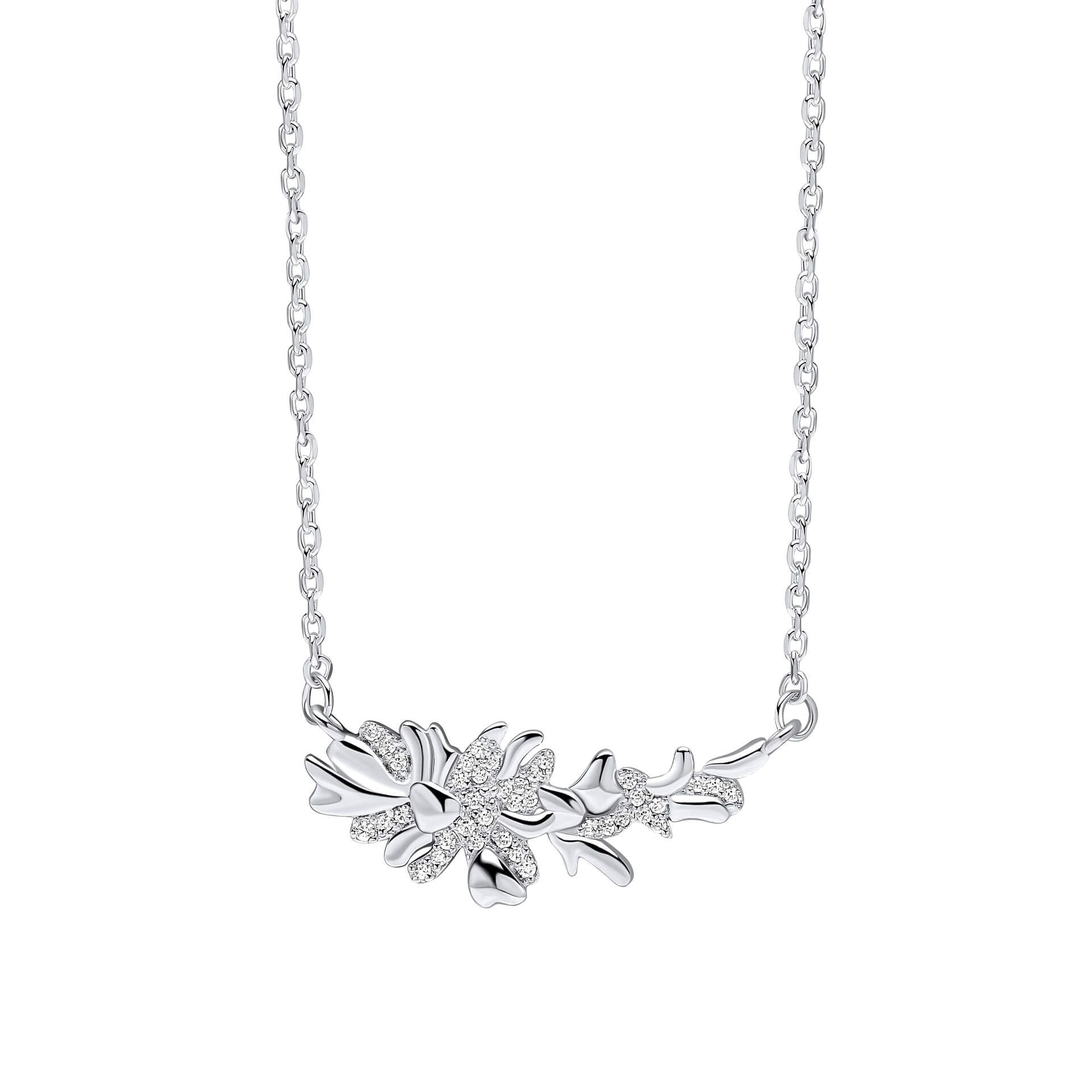The silver-plated chain itself is slender and sturdy, adding to the piece’s understated elegance and allowing the floral aspect to remain the focal point. This versatile necklace can be worn to elevate day-to-day ensembles with a touch of sparkle, or as an exquisite accessory for eveningwear, making it suitable for a wide range of occasions. Its graceful design ensures it can transition seamlessly from casual gatherings to more formal celebrations, always exuding femininity and refinement.