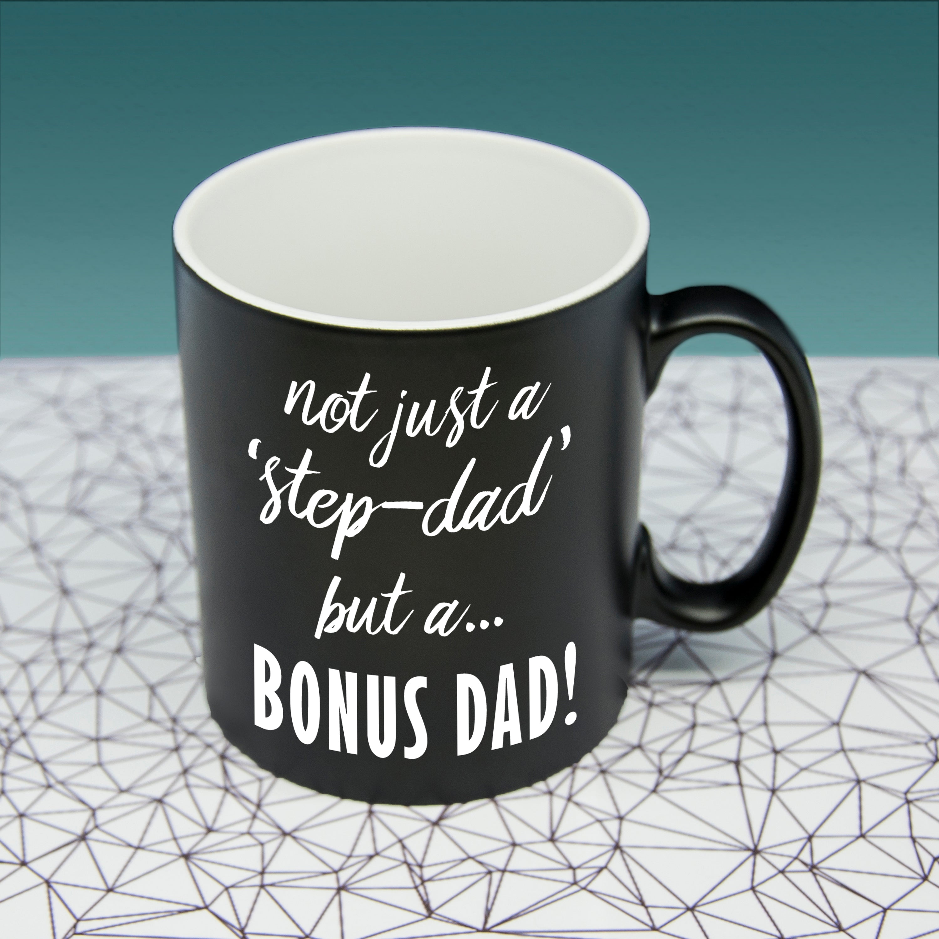 Looking for a gift that says ‘You’re not just appreciated - you’re legendary’? Our gorgeous Personalised Bonus Dad Matte Black Mug is a heartfelt and dashing way to show your step-dad just how much he means to you. The perfect gift for your amazing step-dad on Father’s Day, his birthday, or as a Christmas surprise, this drinkware marvel is a daily reminder that he’s a vital part of the family!