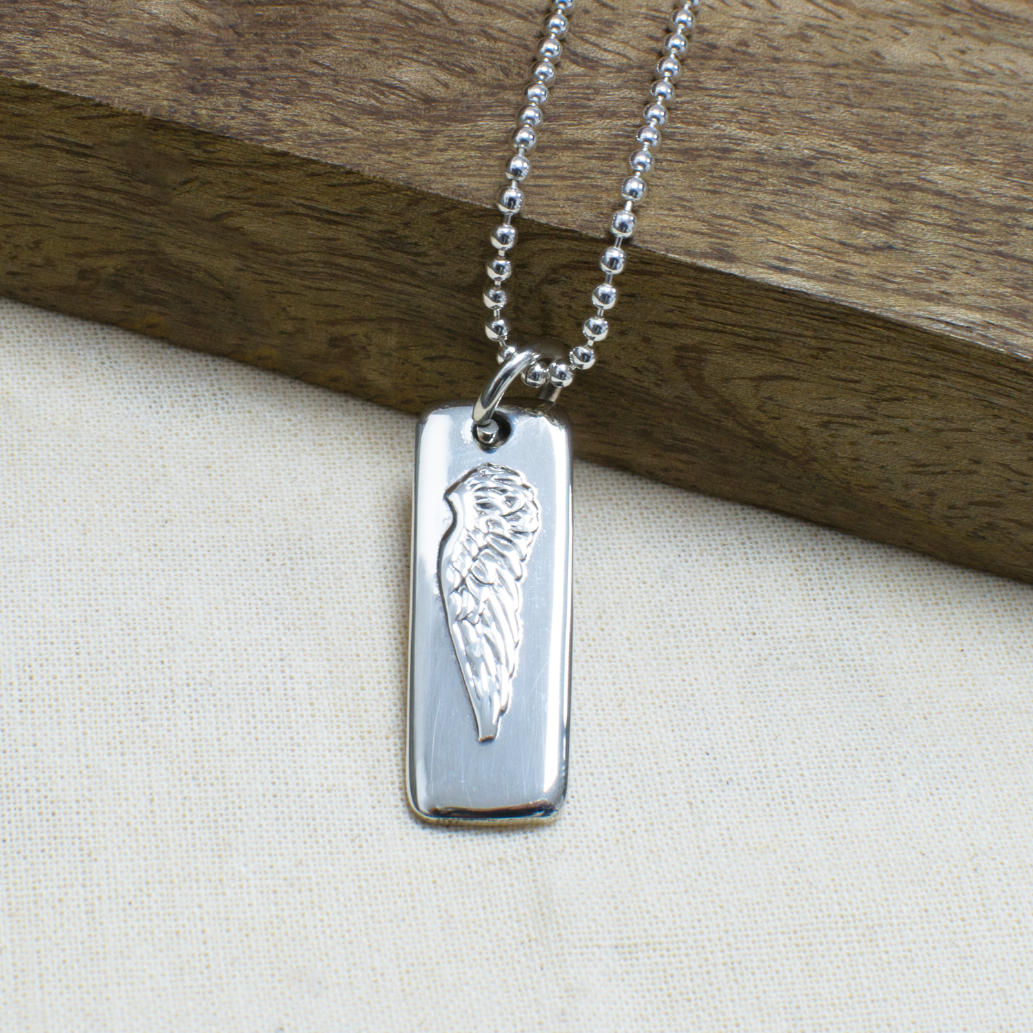 Personalised Sterling Silver Embossed Angel Wing Necklace