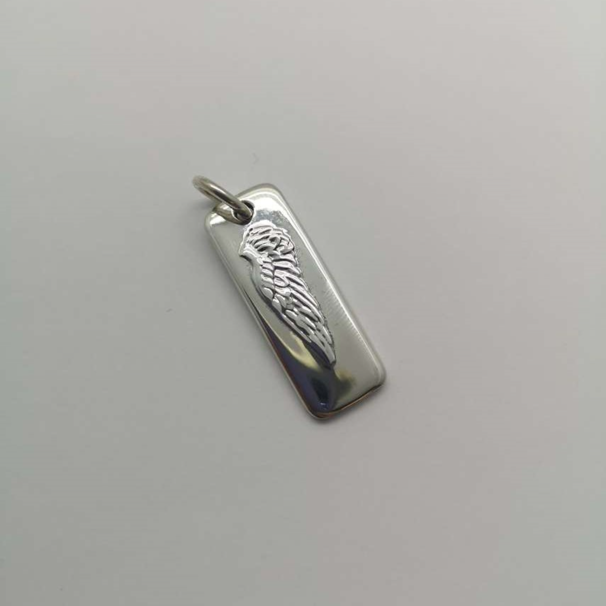 The raised wing design is delicately embossed into the surface of the pendant, allowing the intricate feather detailing to stand proud against the smooth silver background. This contrast enhances the visual appeal of the necklace and gives it a tactile quality, inviting it to be held as well as worn. The sterling silver construction ensures durability and lasting beauty, allowing the piece to be treasured as a trinket and keepsake for years to come.