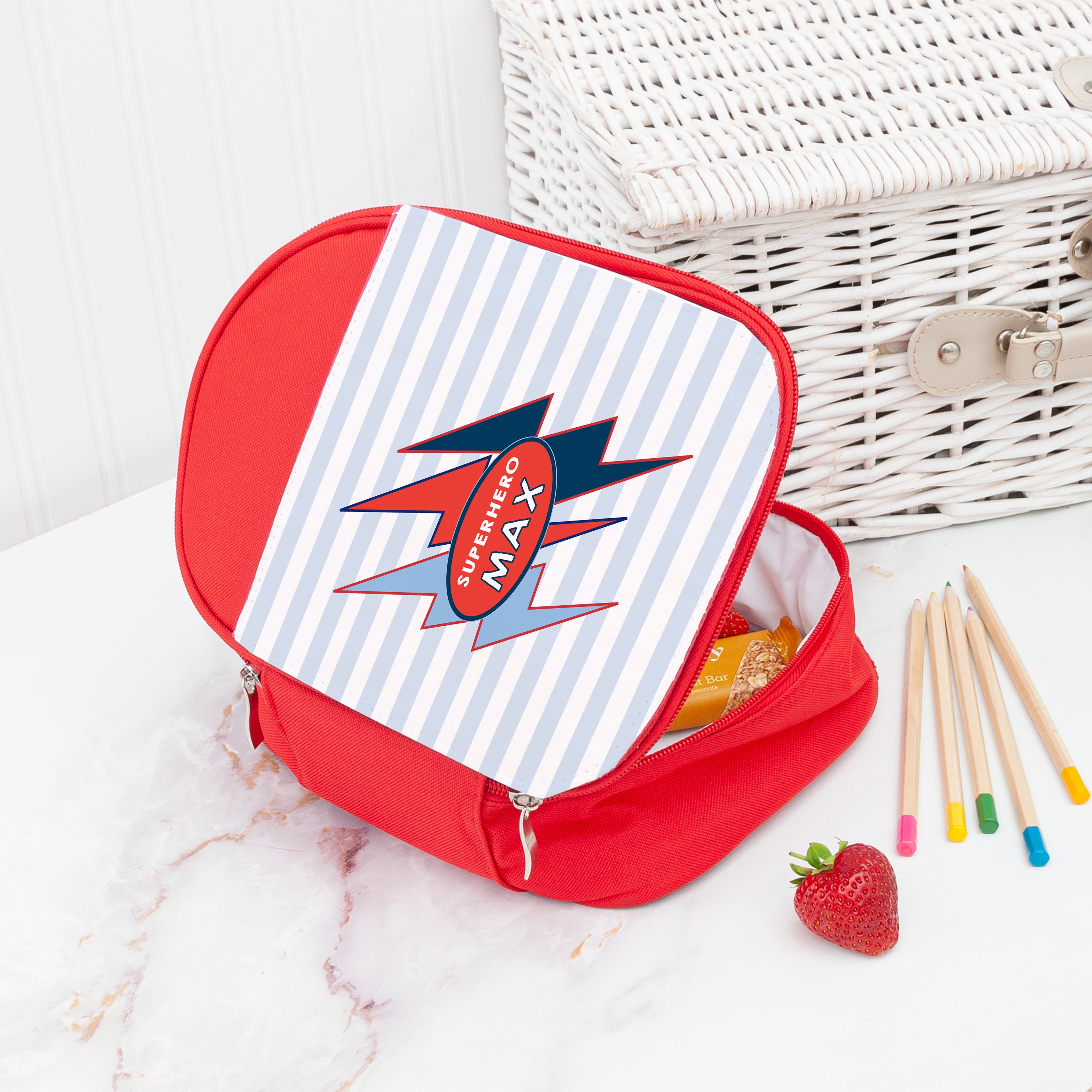Look no further than our stylish personalised superhero red lunch bag if you're looking for the perfect birthday or Christmas gift for your little superhero or keen comic reader. The Robin to your Batman, this durable and capacious lunch bag will make a trusty lunchtime sidekick, that will make lunch times a whole lot more fun and exciting. Their friends will also want one of their own too!