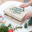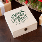 The words 'Merry Christmas' and 'Christmas Eve Box' comes as standard text in a green script style font along with a reindeer and star icons. Please be sure to add the name exactly as you would like it printed.
