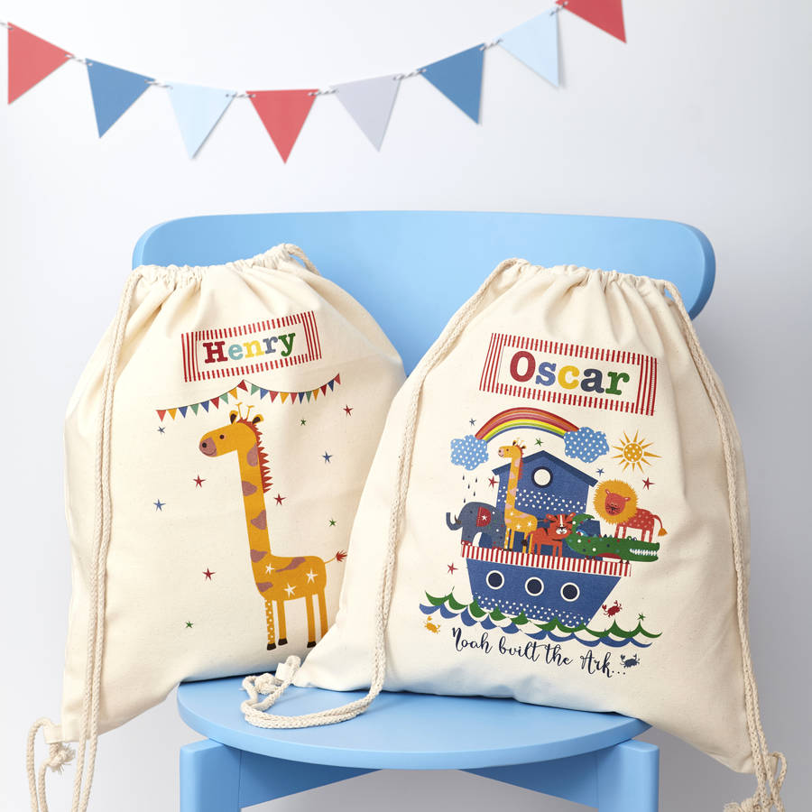 Personalised Kid's Giraffe Cotton Nursery Bag