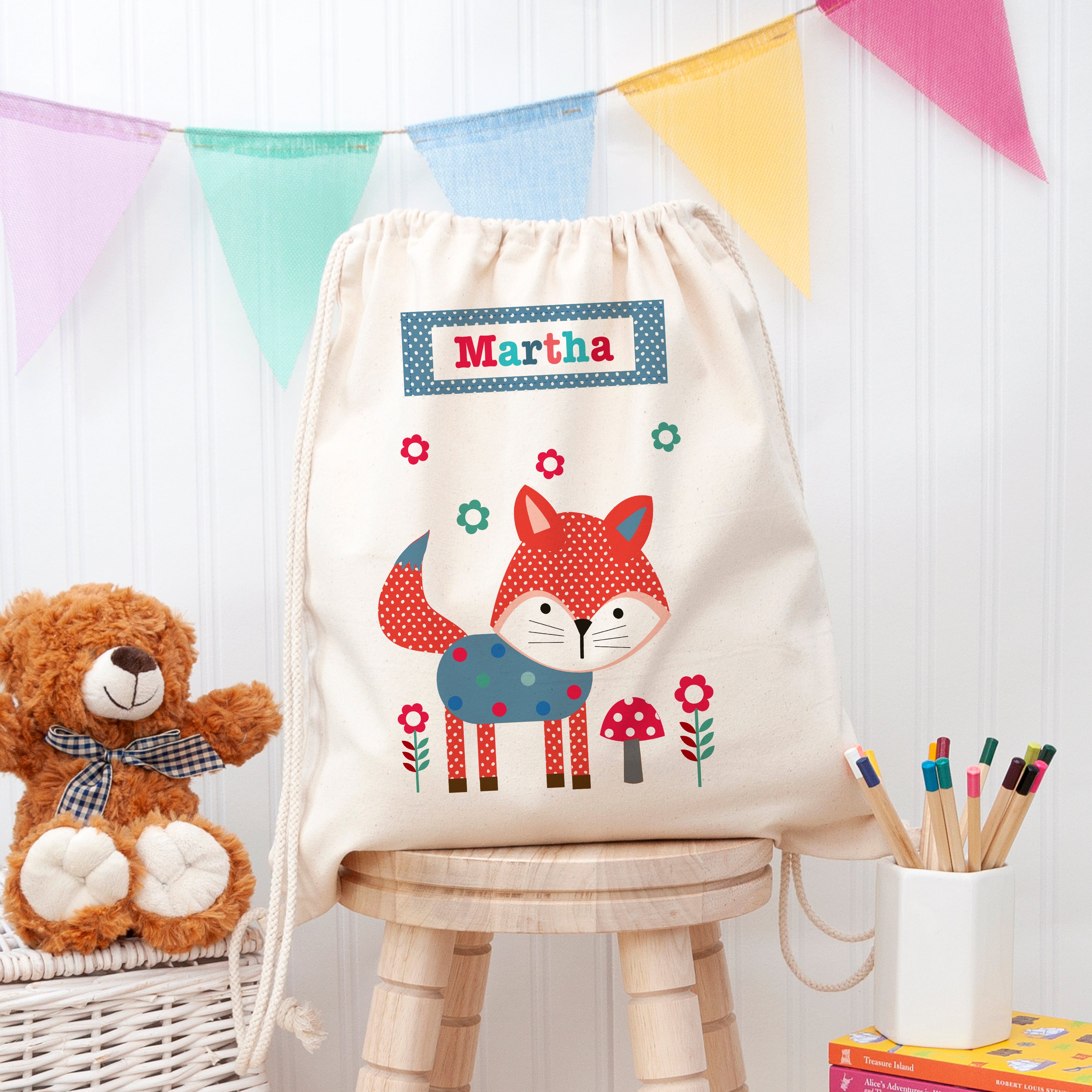 Searching for the perfect school bag for your little adventurer? Gift them one of our beautiful and meaningful Personalised Playful Fox Cotton Nursery Bags - the perfect size for a fun filled day of learning at school or nursery. Treat your little mischievous fox to this stunning cotton drawstring school bag for their birthday, Christmas or as a back to school gift to start the new school year off in style.