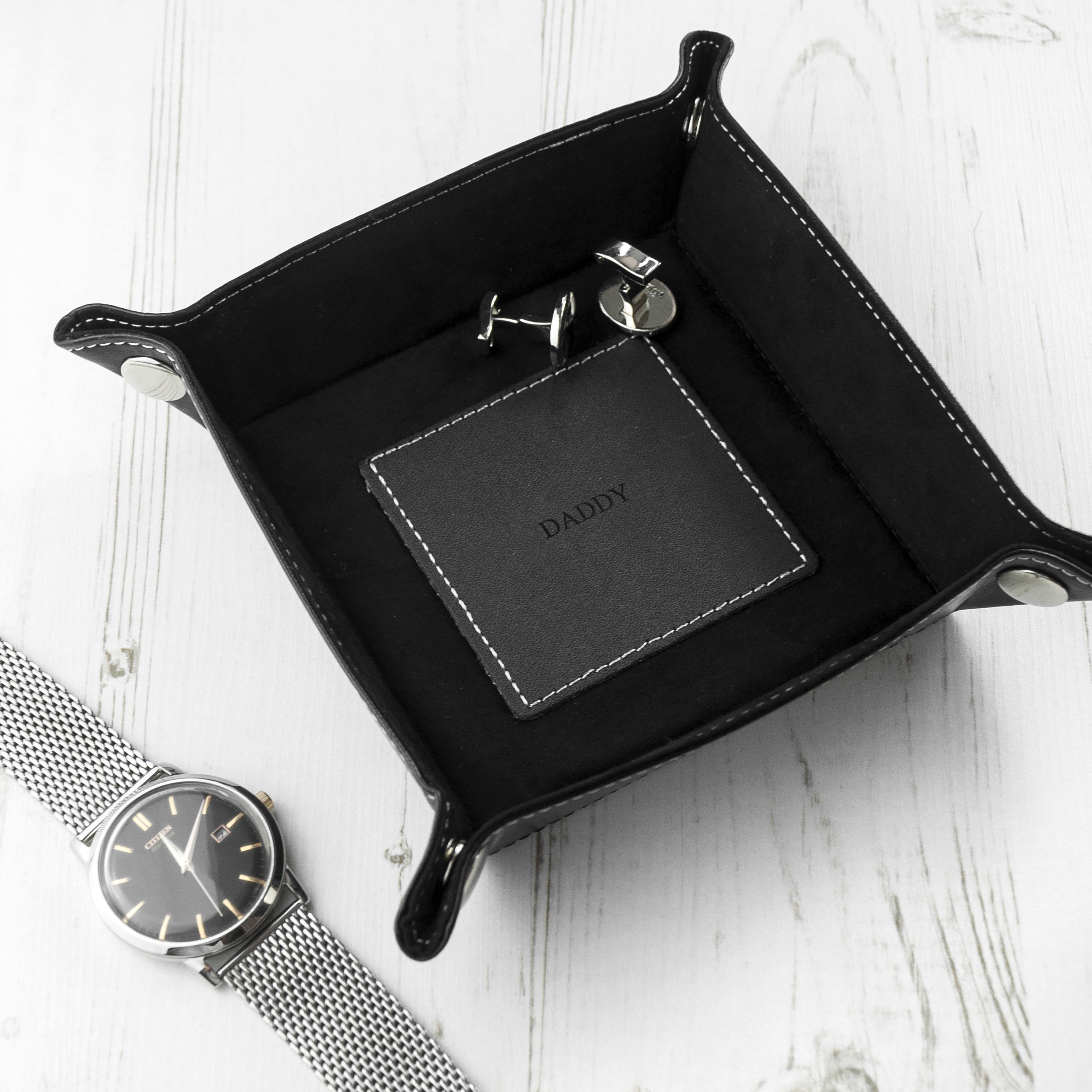 Are you constantly misplacing your keys, trinkets and other small valuables? With our sleek and stylish personalised men’s organisers you can keep your bits and bobs all in one place, stored neatly, safely and securely! From luxury watch boxes to sublime valet trays, say goodbye to those panicked, frantic searches when you are leaving the house, and say hello to a more organised and stress free morning routine!