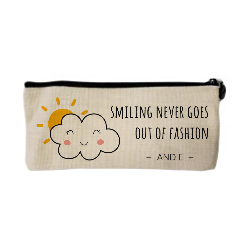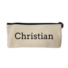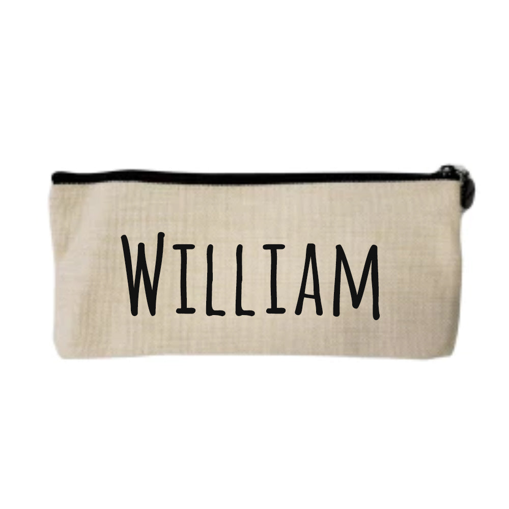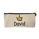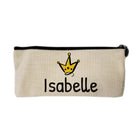 Choose from either playful, typewriter or handwriting style font varieties for a name only linen pencil case or get a personalised linen pencil case with a king, queen, llama or smiling cloud design.
