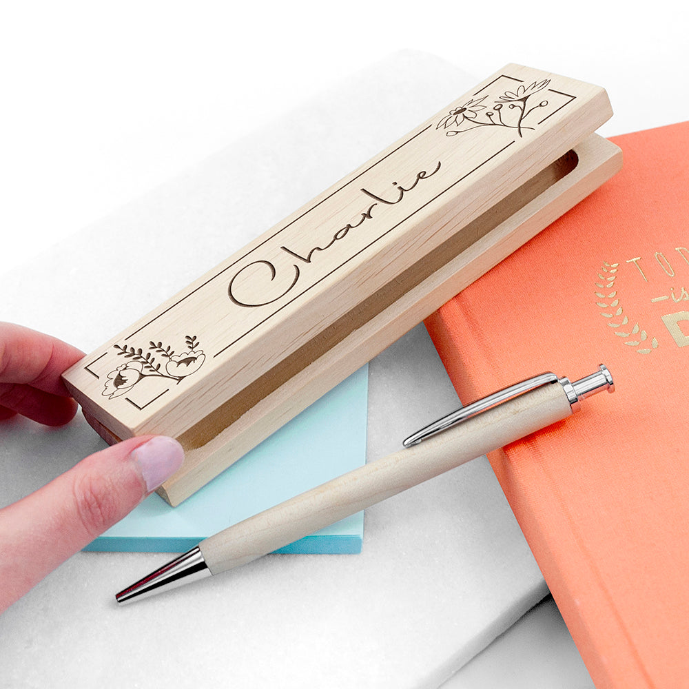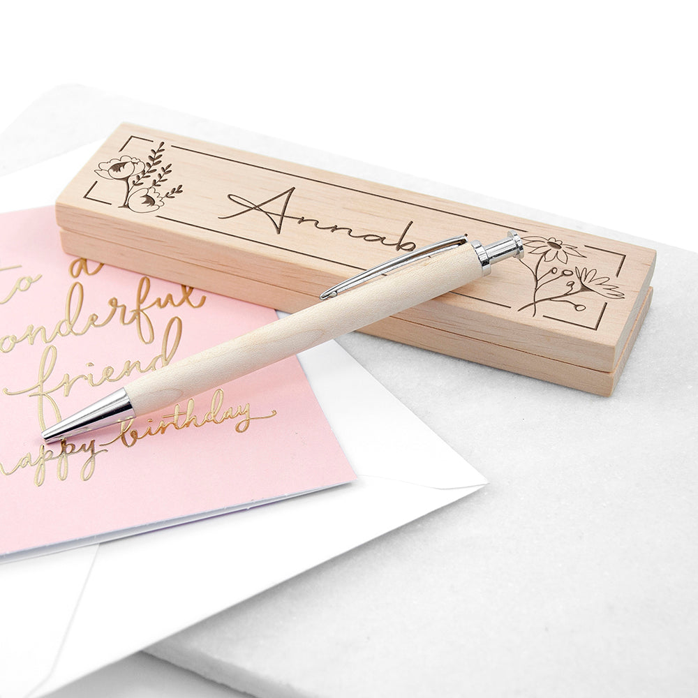 Personalised Wooden Floral Ballpoint Pen Set
