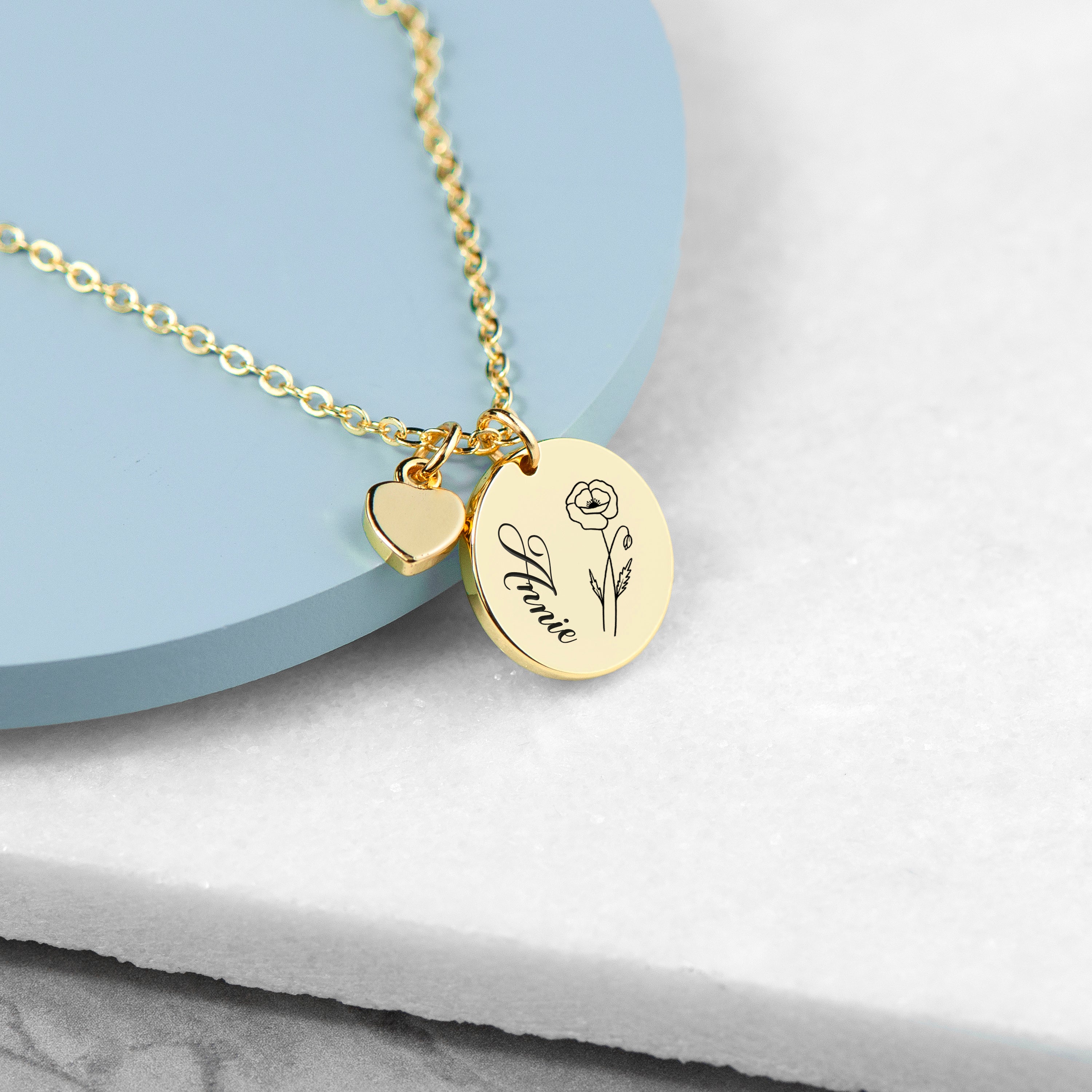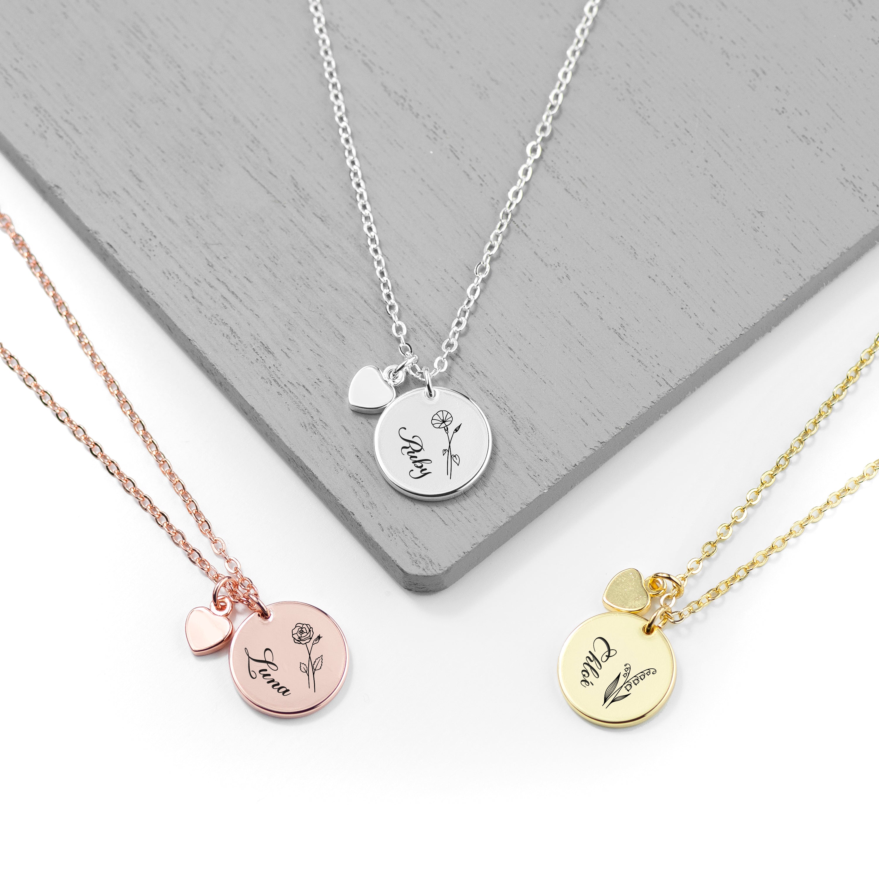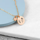 Personalised Birth Flower Heart and Disc Necklace
