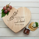 Personalised 'All You Need Is Love' Heart Cheese Board Set