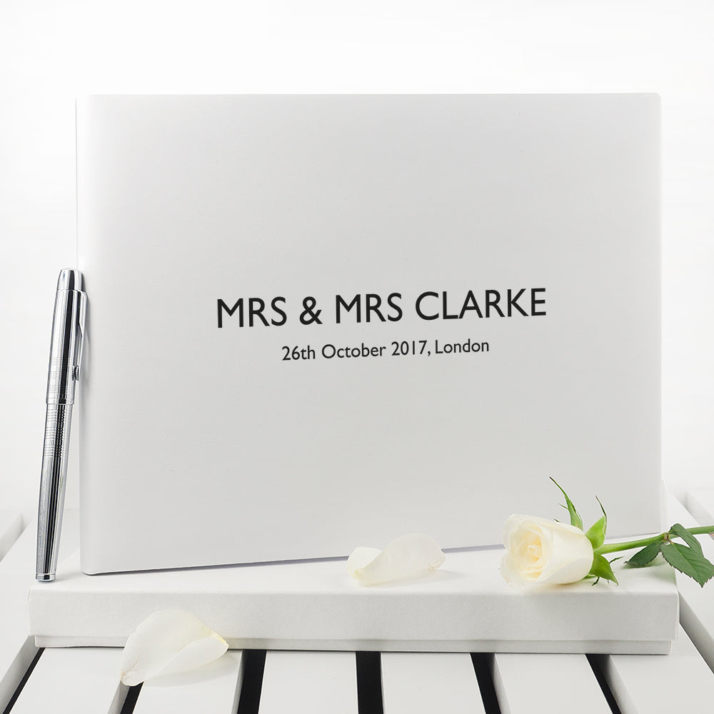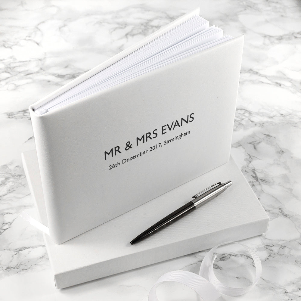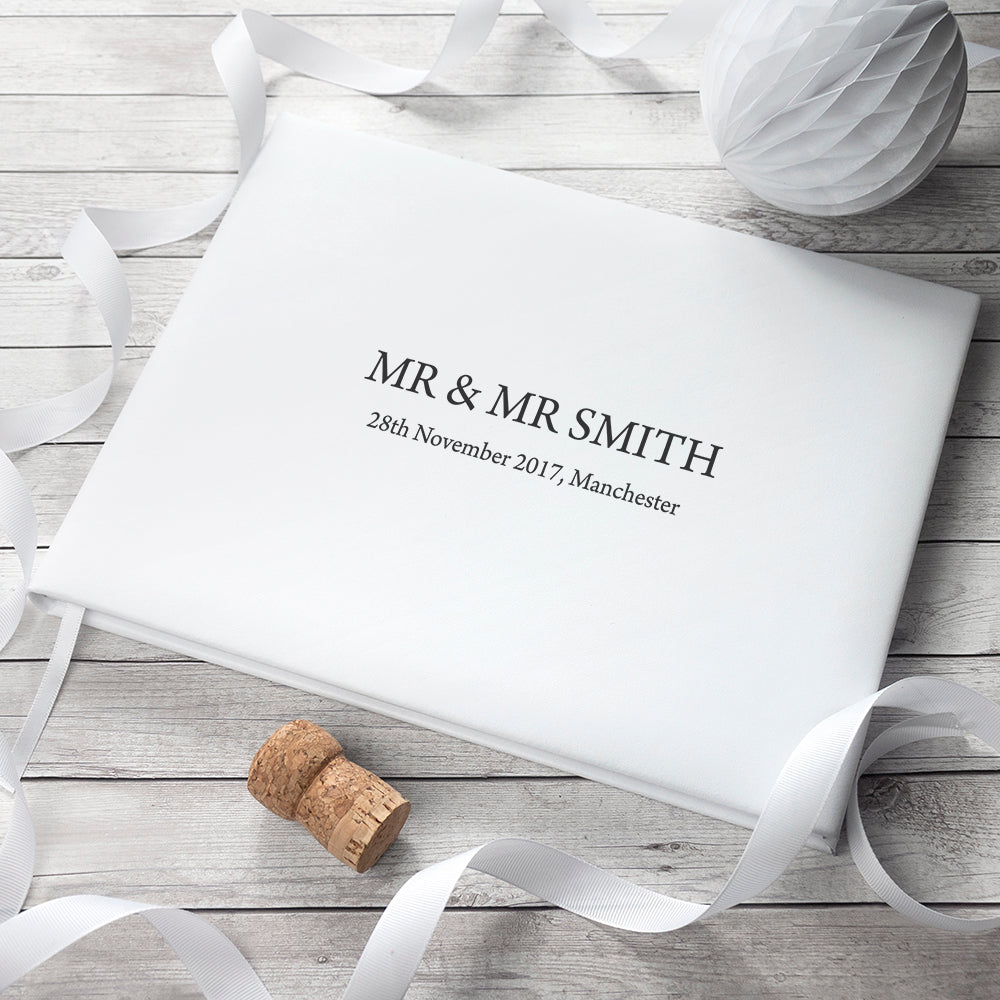 Personalised Luxury White Italian Leather Wedding Guest Book