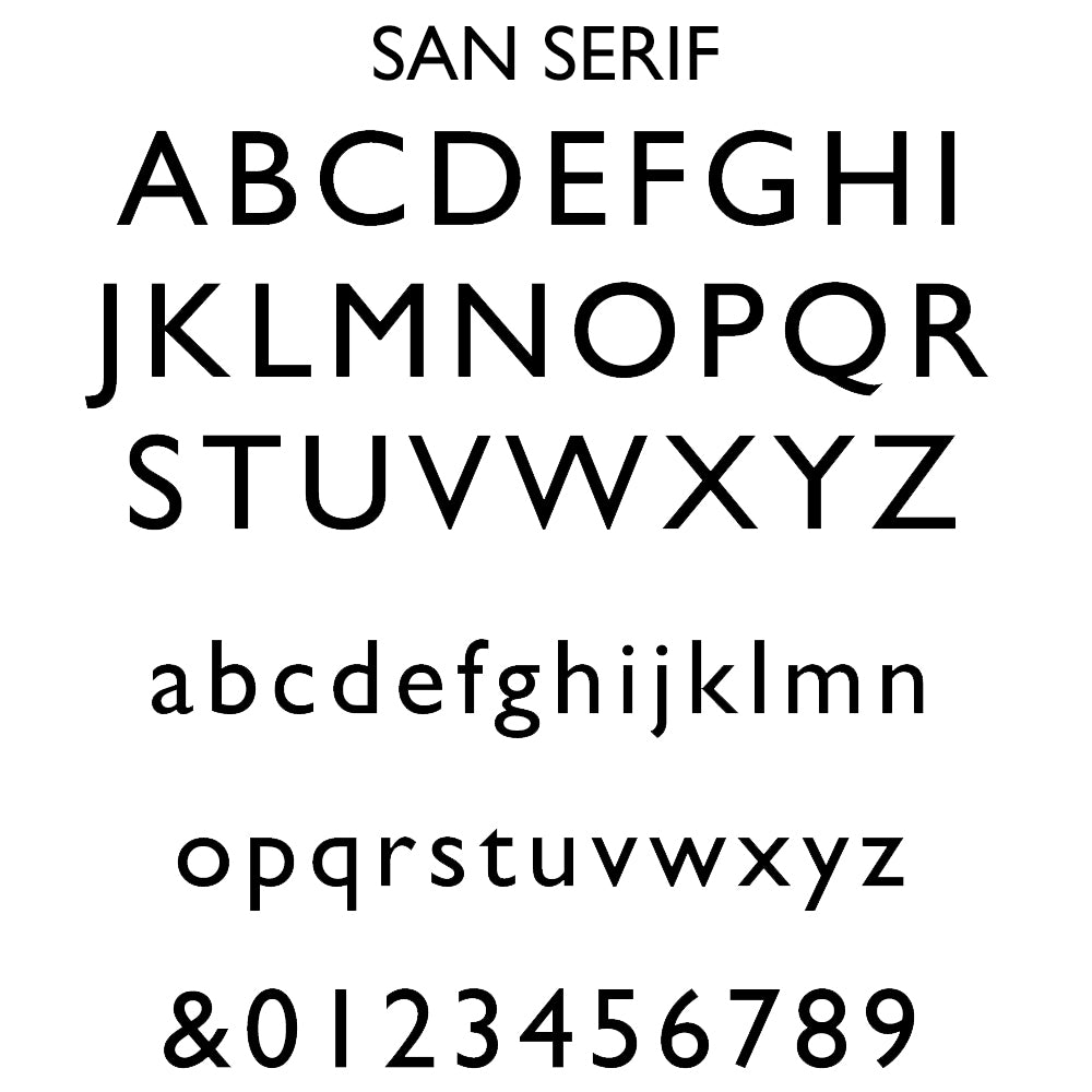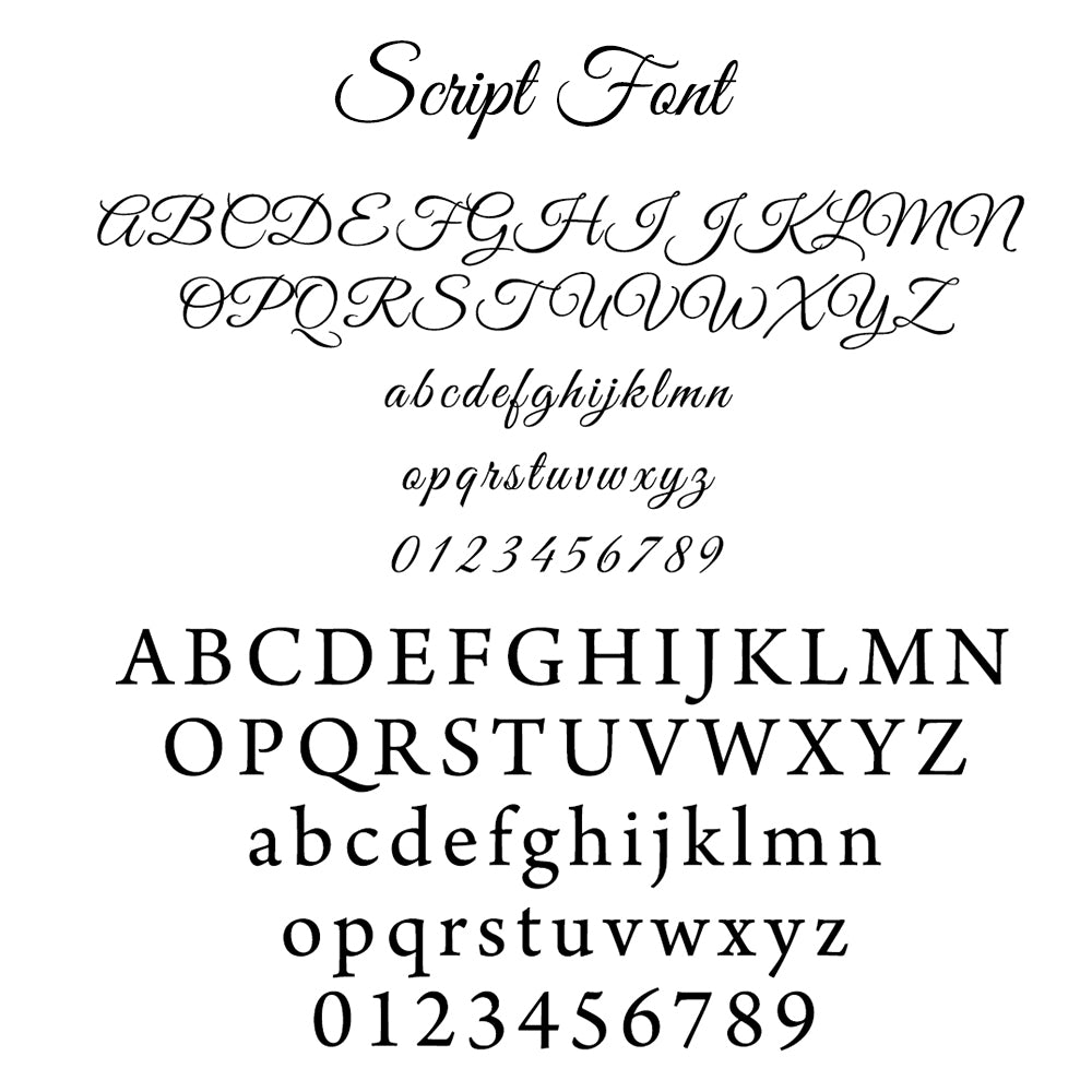 Line 2: Up to 30 characters (comes in a slightly smaller as standard, second line comes in a serif font if you select script)