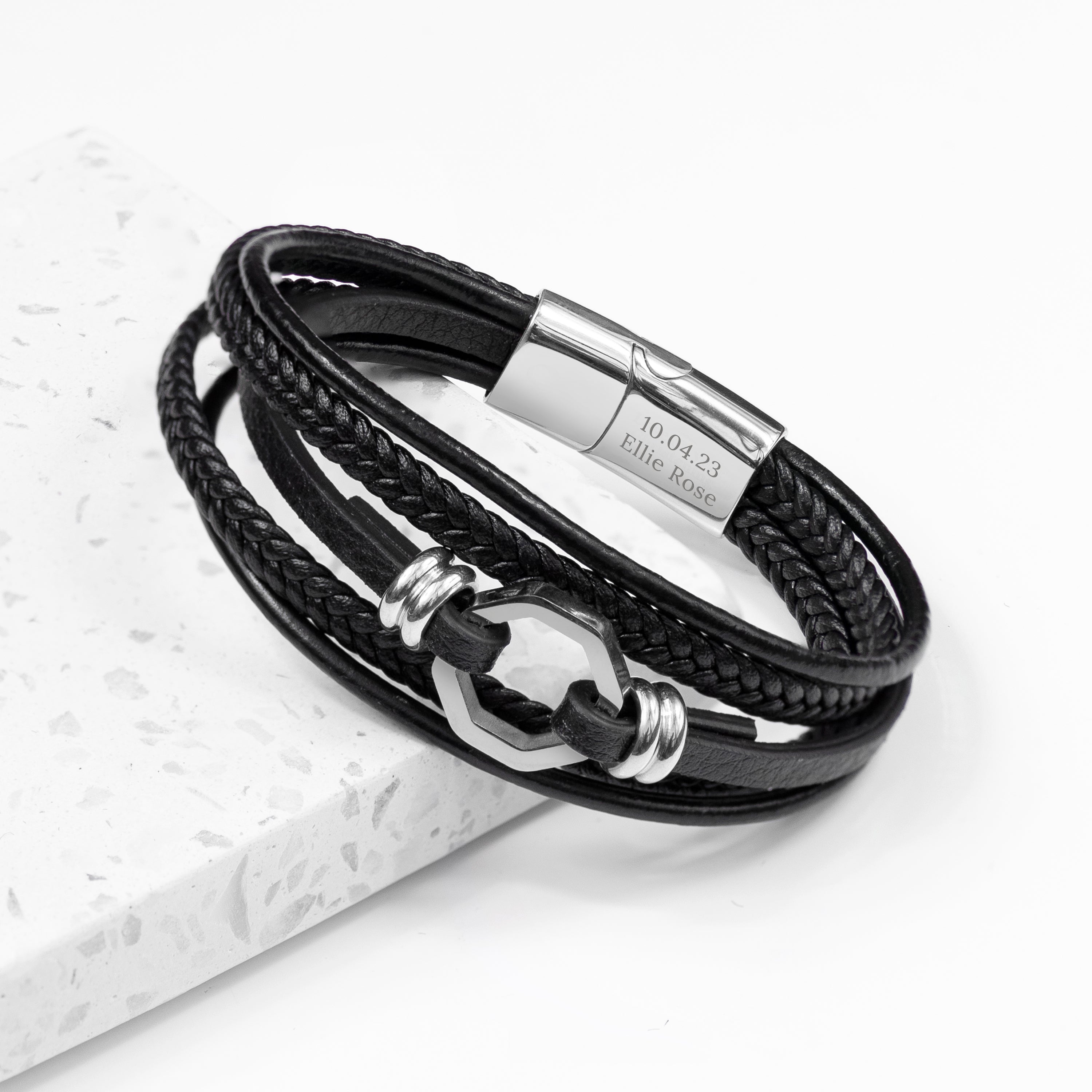 Make this gift truly unique by adding a personal touch. We offer expert engraving services, allowing you to personalise his bracelet with a personal message (perhaps including his name), this will be meticulously engraved onto the silver plated octagonal element by our phenomenal team of artisan creatives to the highest standard, turning this accessory into a cherished keepsake.