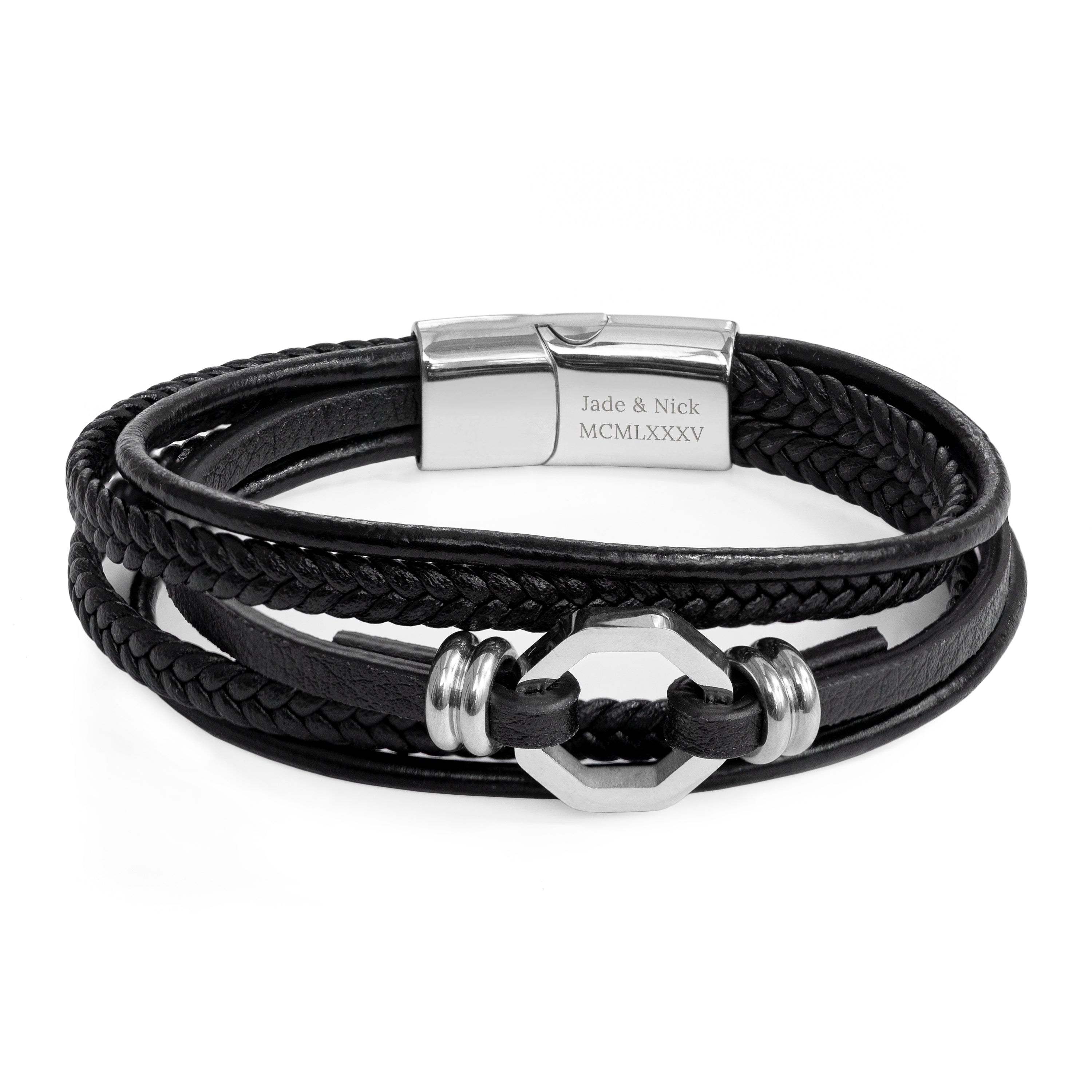 Personalised Men's Mayfair Leather Bracelet in Silver
