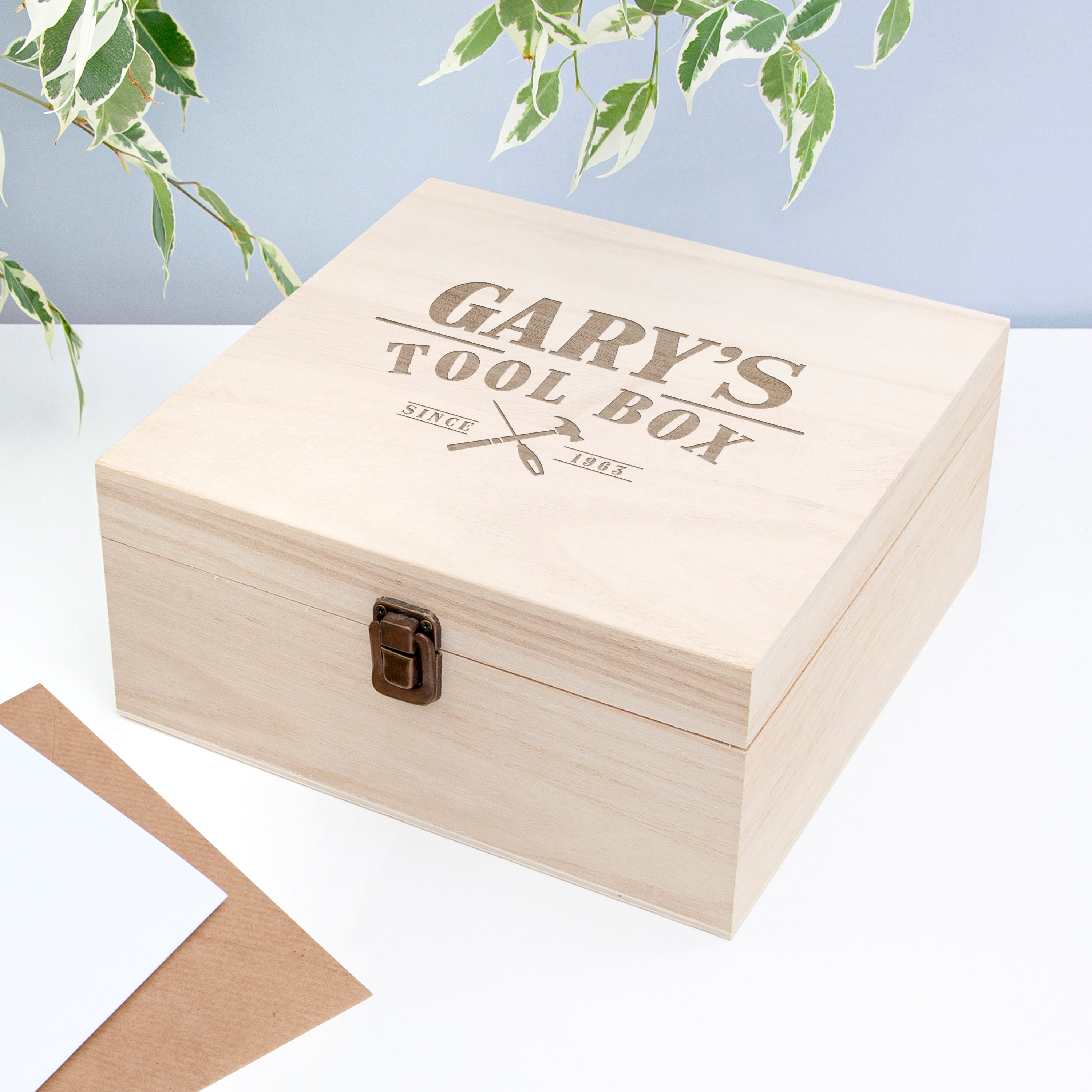 This wooden tool box is perfect for the avid fixer upper engraved with a name of your choice.