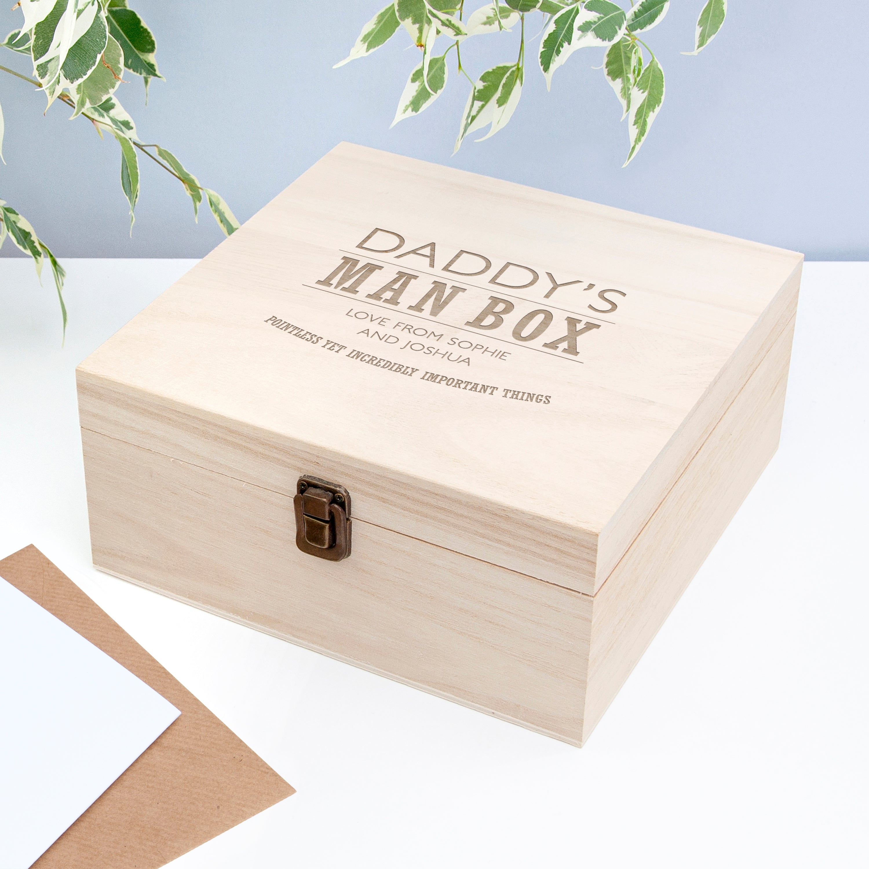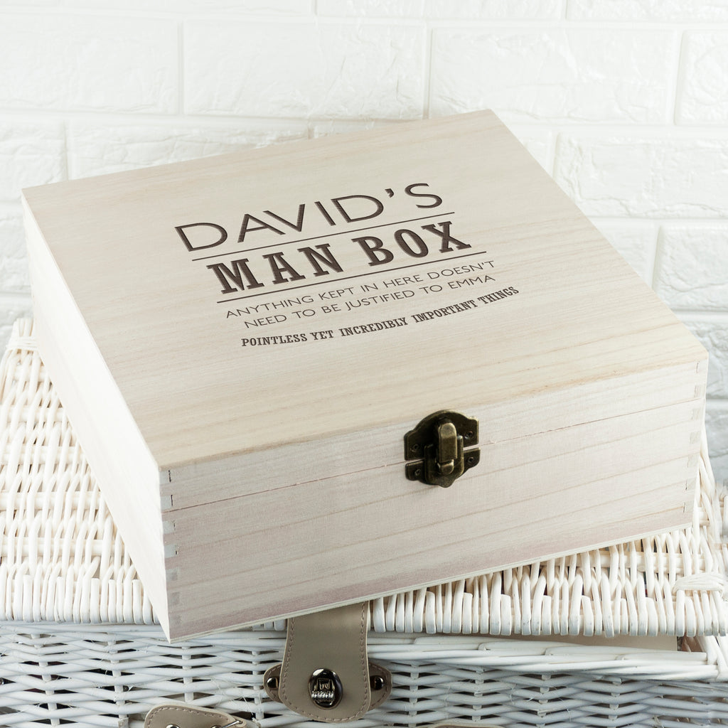 • The words '[Name]'s Man Box' and 'Pointless yet incredibly important things' come as standard text