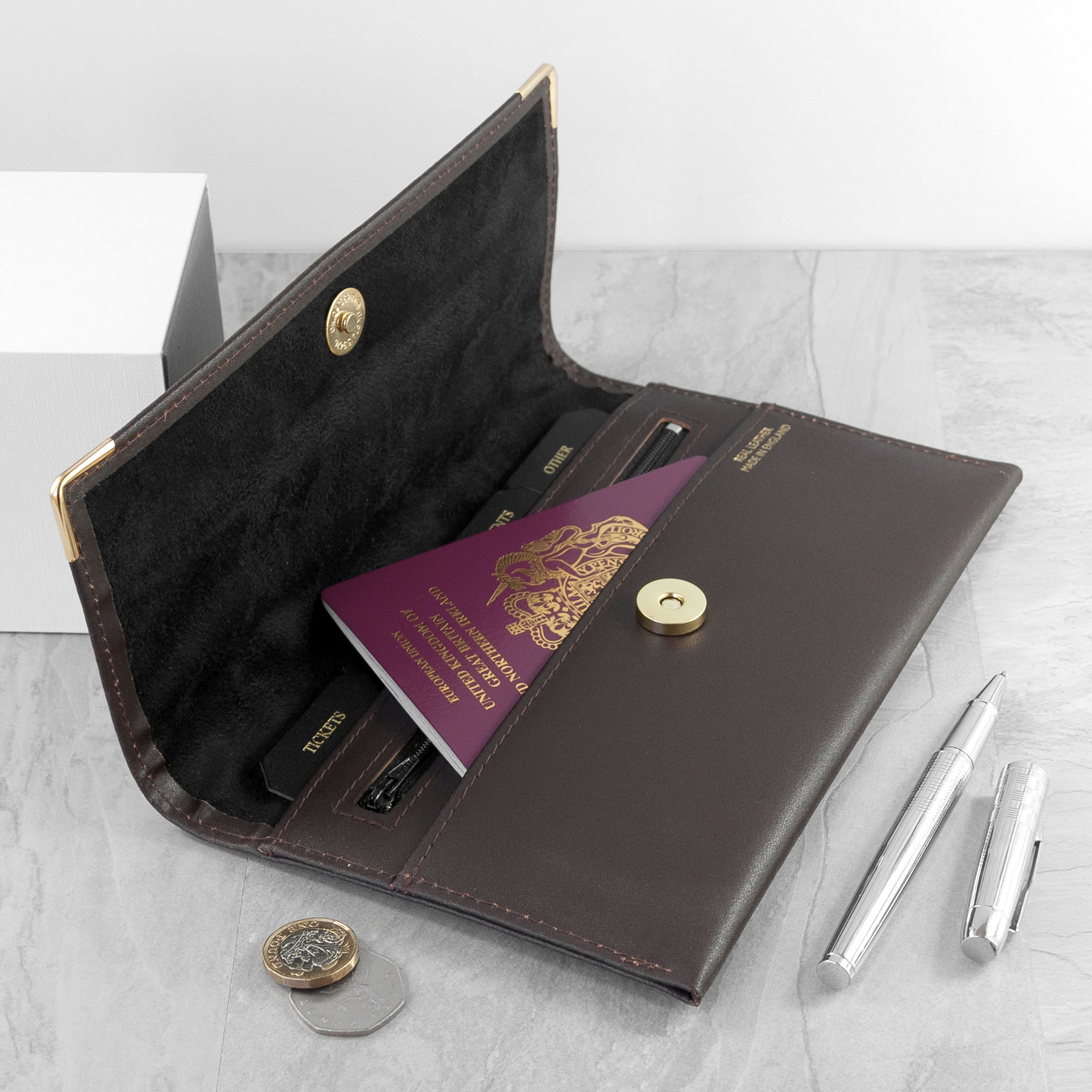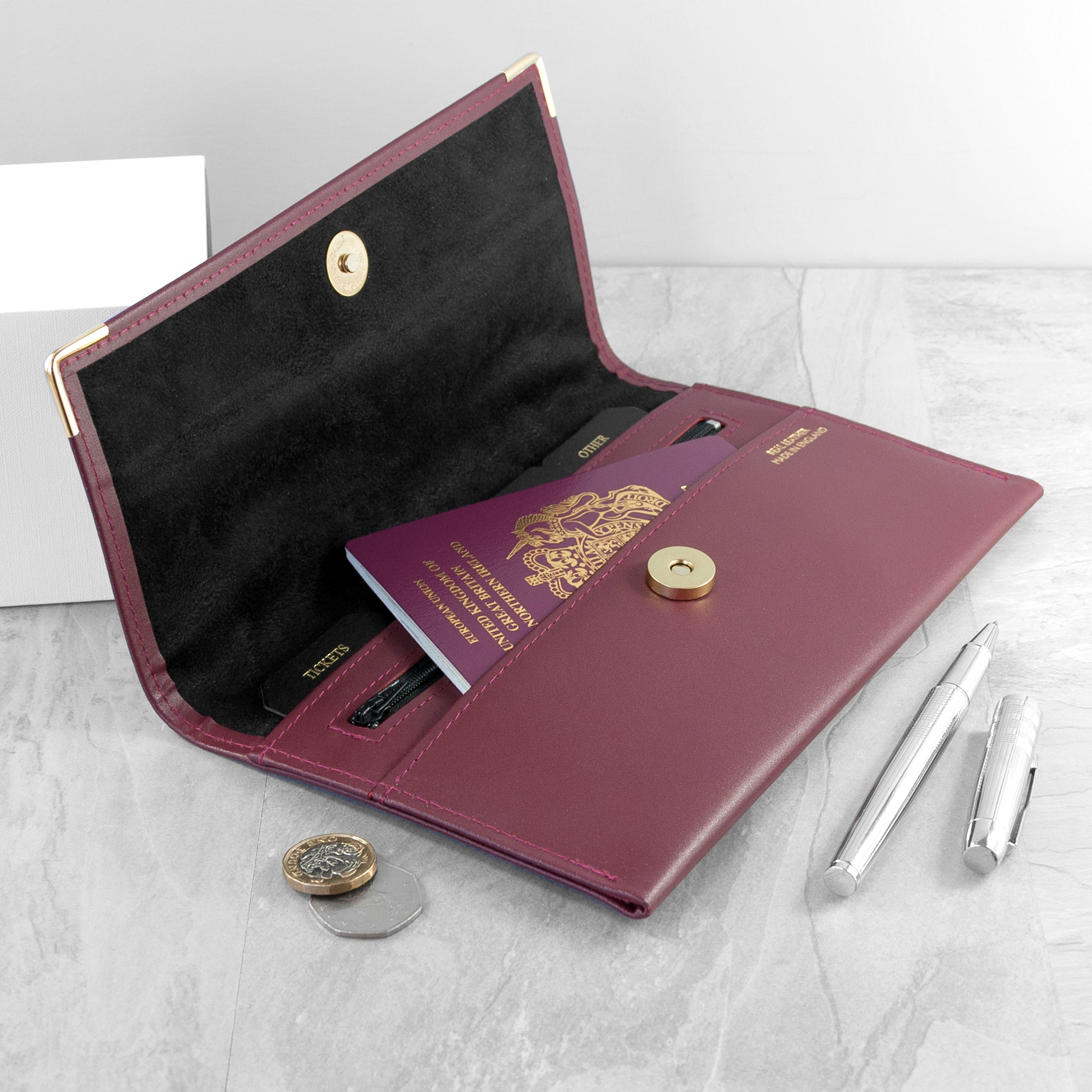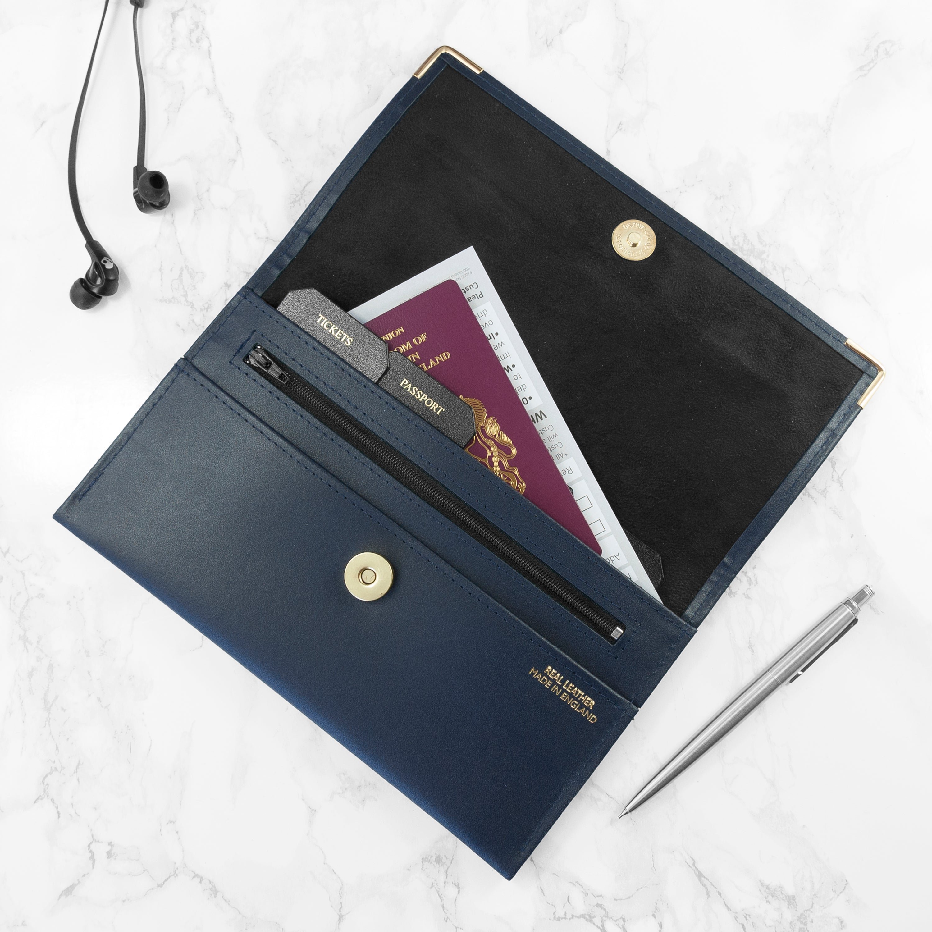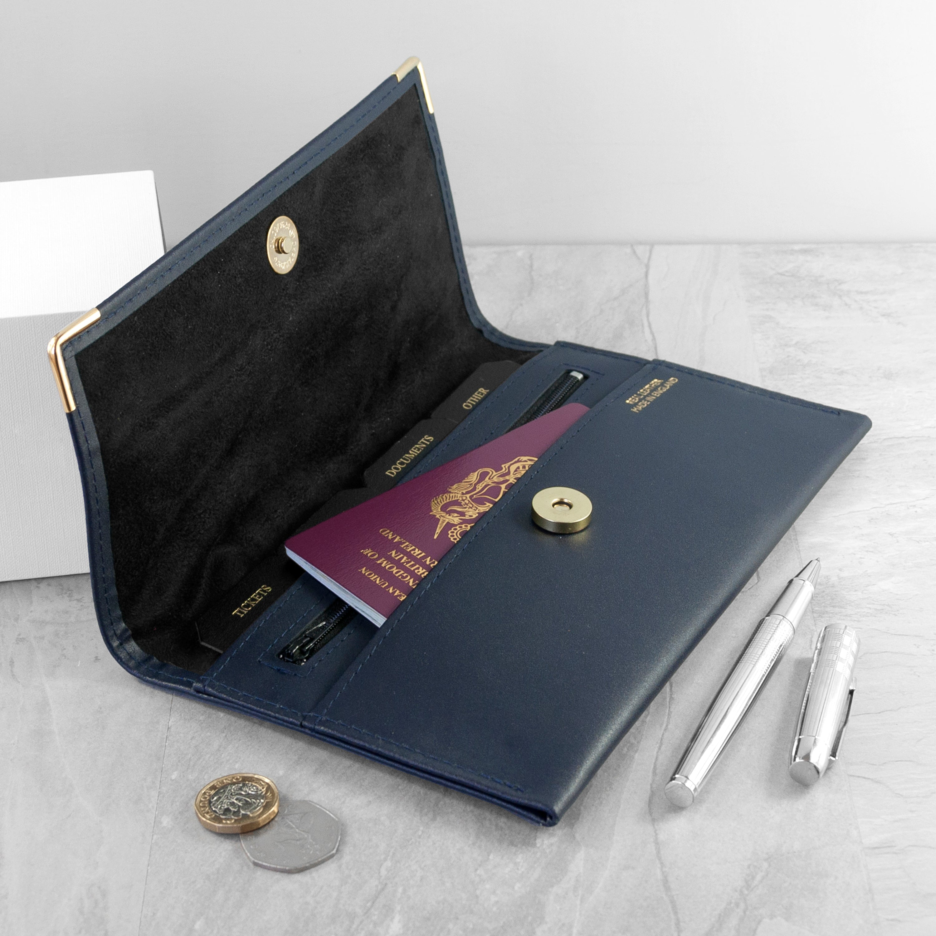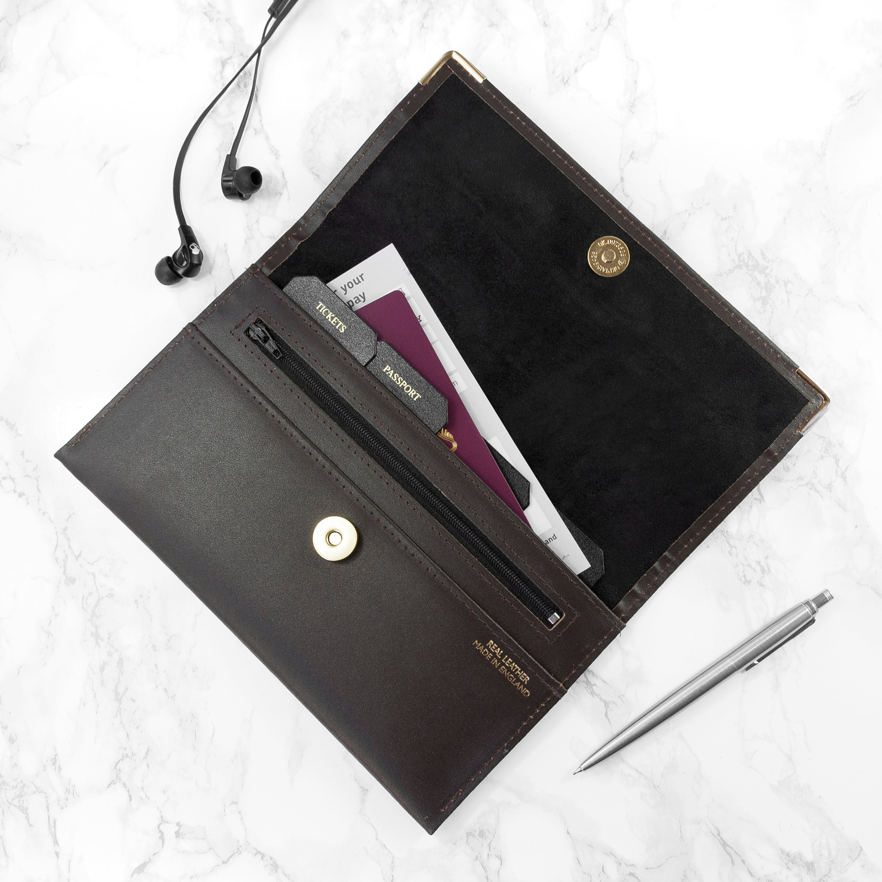 This travel pouch's sleek design and useful tabs for your tickets, passport and documents are great for even the most daring of adventurers. It also features an inner zip compartment for loose change and a magnetic button clasp to keep everything safe.