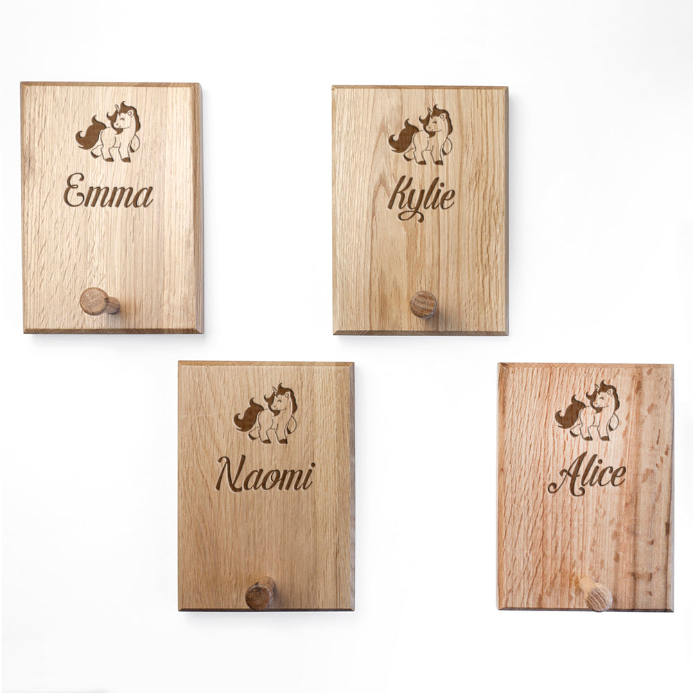 Made from solid oak and engraved with a name of your choice this coat hook is the perfect addition to any little one's room.