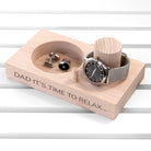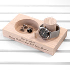 If you're looking for a stylish addition to a special man’s desk, look no further than our stunning personalised oak wood watch stand - perfect for a man who wants to show off his watches. This solid oak wood chunky, self-standing stand is ideal to store loose change, smaller jewellery, little trinkets and maybe a watch or bracelet that is worn daily. Keeping them in one space, tidying it up and adding a touch of rustic. This stand would make a perfect birthday, Father’s Day or Christmas gift for him.