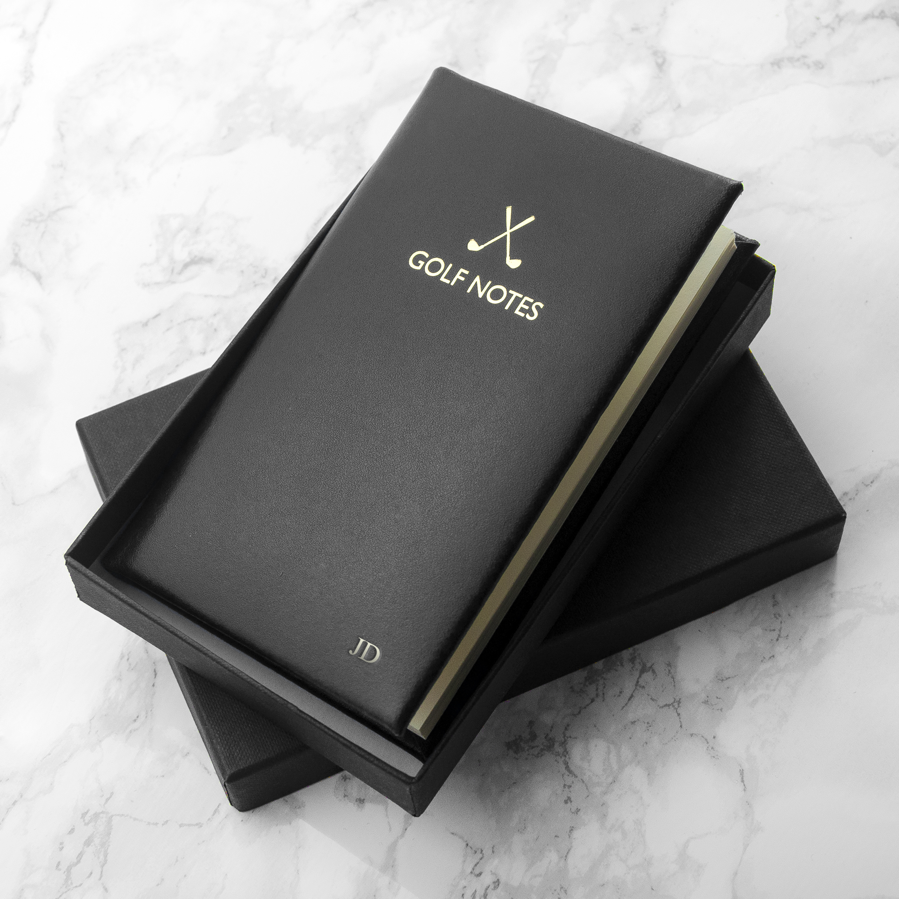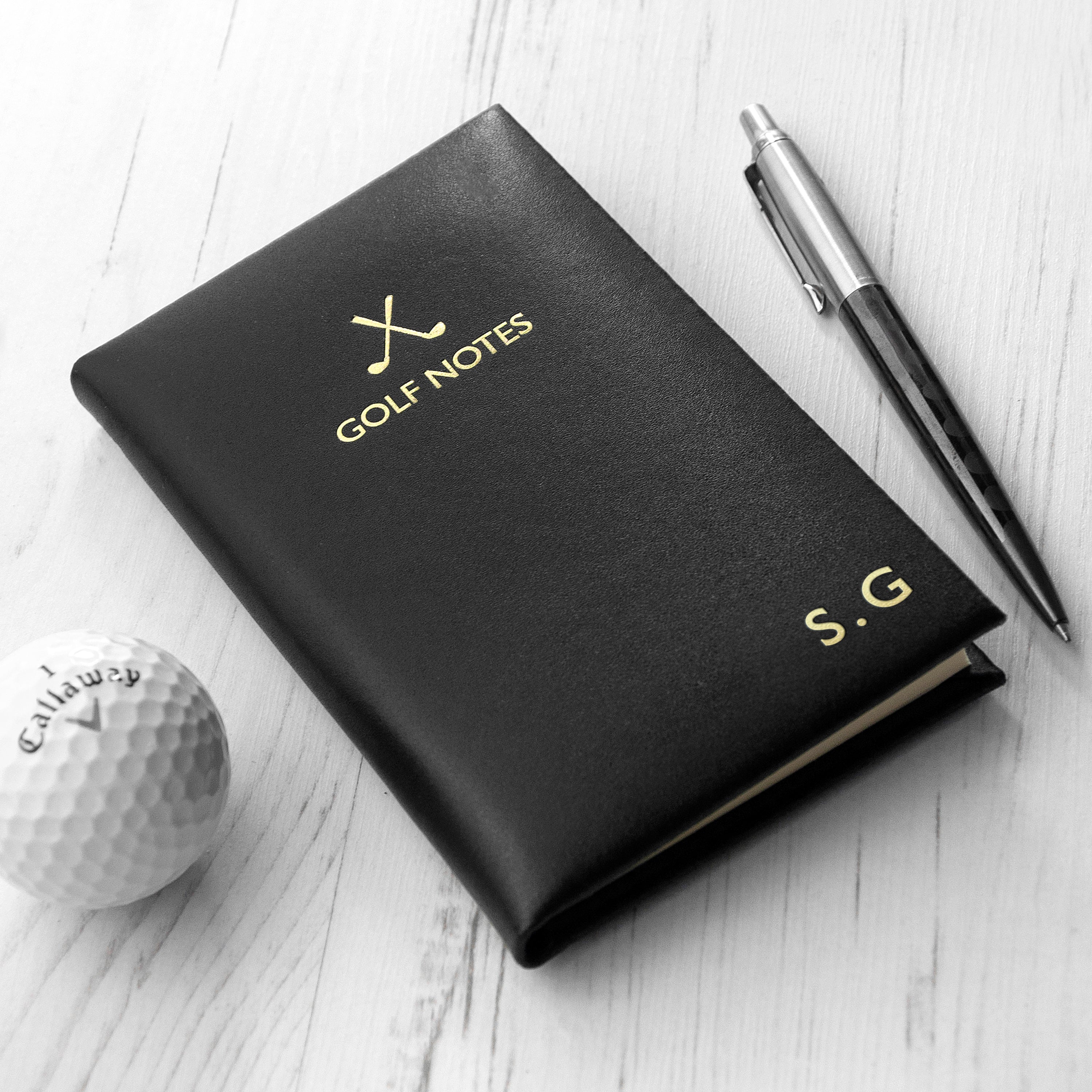 If you're wanting to improve your golf game, or know someone that does, these our luxury personalised leather gold note booklets, made in England, are the ideal gift for them. They'll be able to record weather, location, time played and their performance over individual games, to see a real change over time.