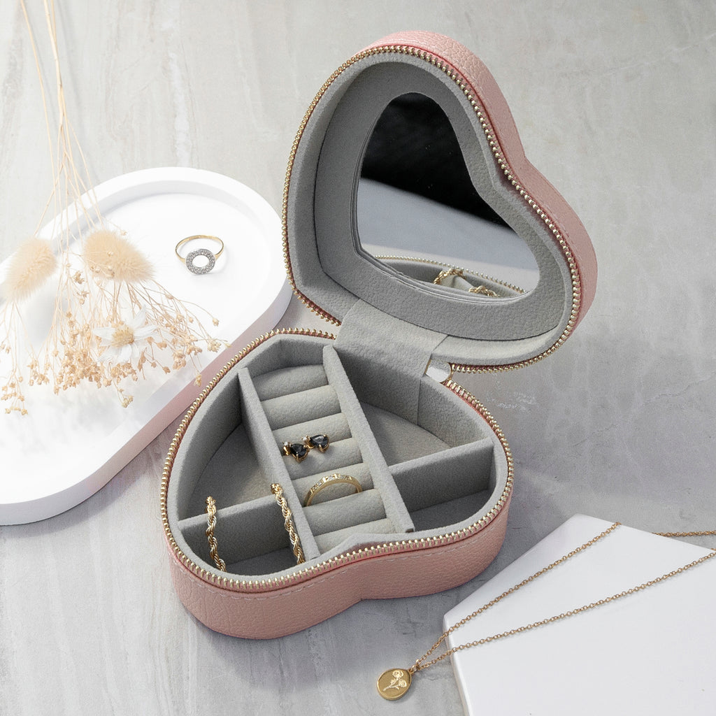 This beautiful heart jewellery case comes in four colours: black, gold, silver or white.