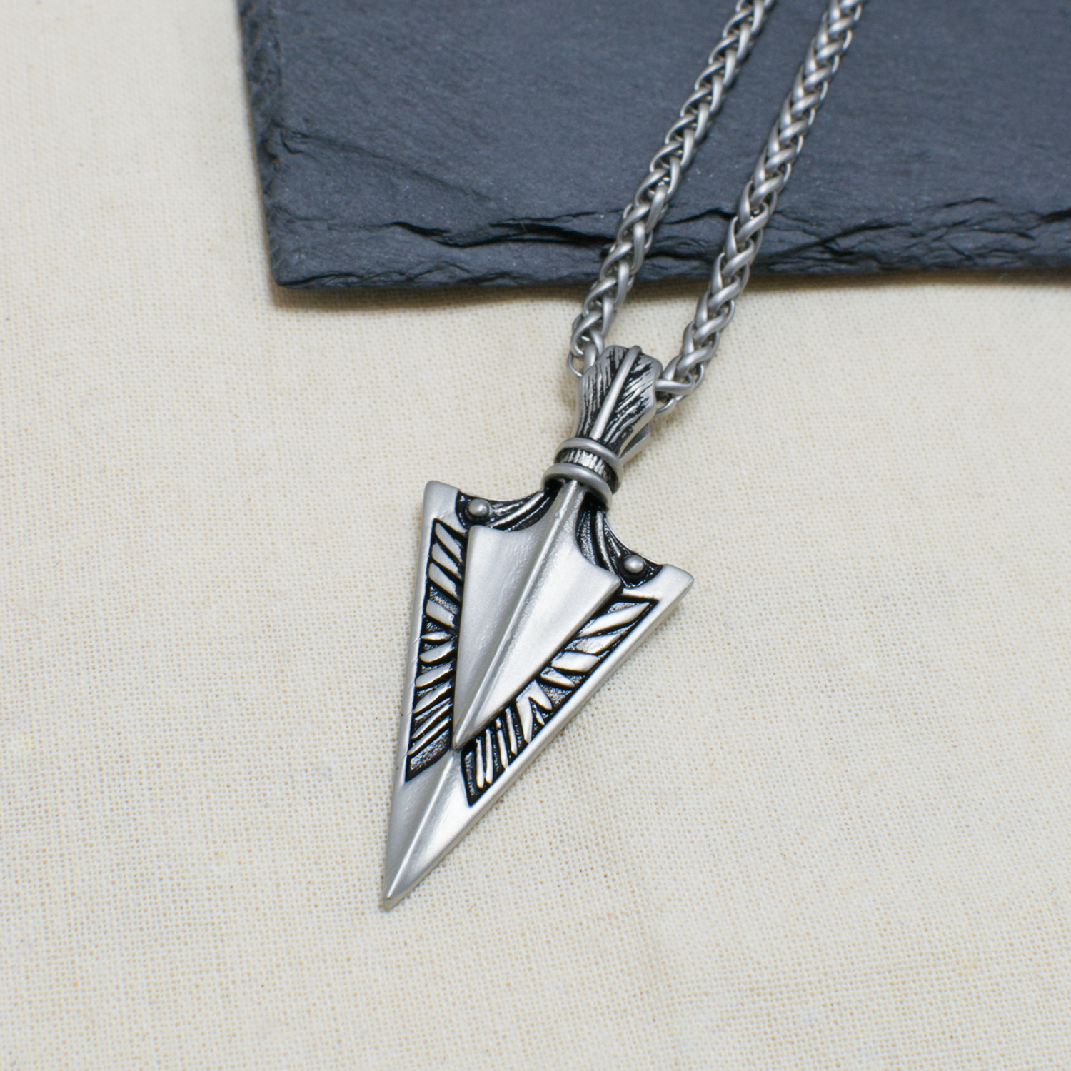 Wearing a rugged spearhead pendant serves as a metaphorical reminder of one's inner strength and the ability to overcome obstacles with precision and bravery; making it ideal as a good luck, graduation or bon voyage gift for him. It is an emblem for the man who navigates life with purpose, acting as a talisman of resilience and a tribute to the adventurous spirit that drives him forward.