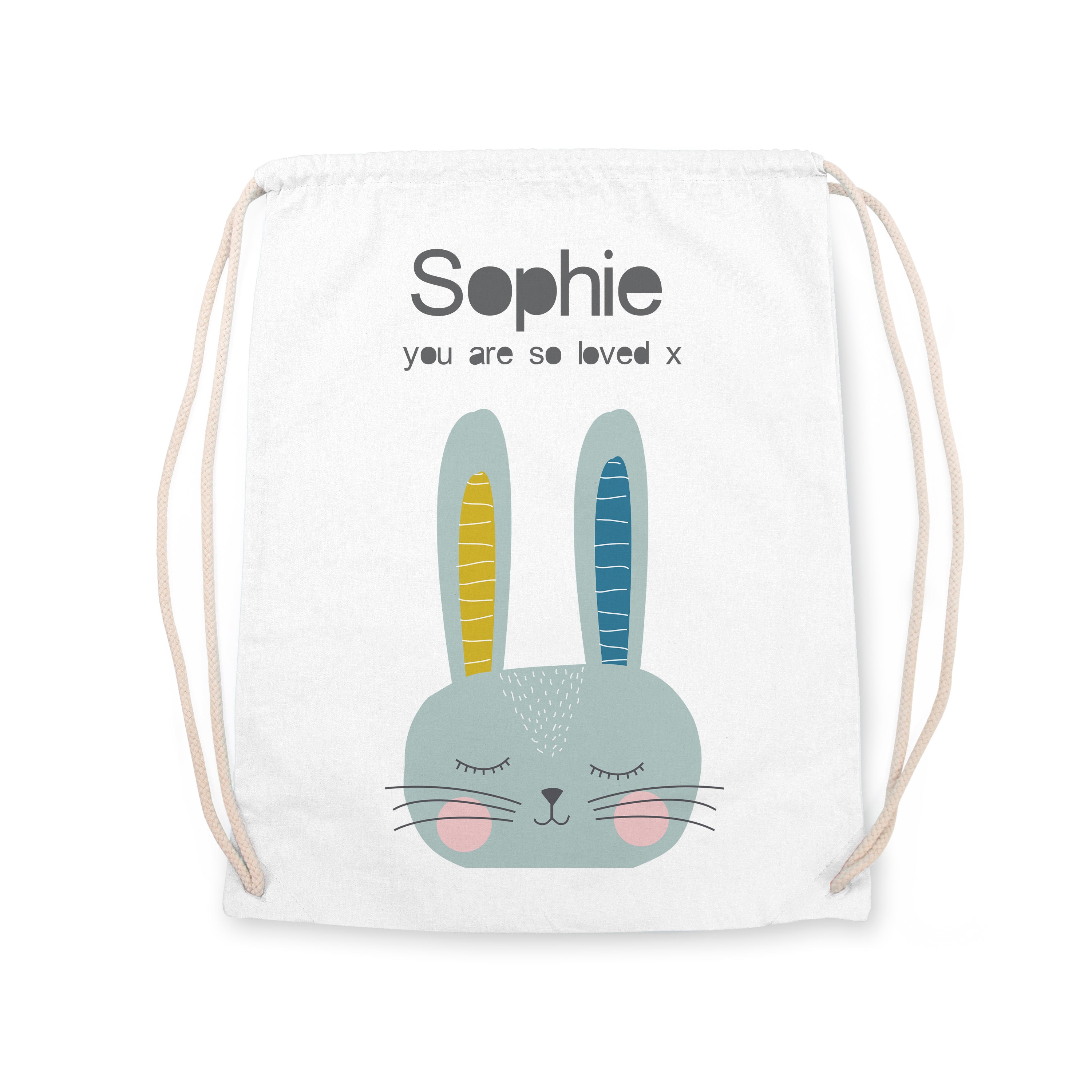 An adorable nursery bag that is sure to be the talk of the changing room before PE, your child is sure to love our personalised kid's rabbit PE kit bag. Whether you get it for their birthday, Christmas or as a back to school treat, their eyes will light up when they receive this thoughtful and practical gift.