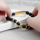 If you’re looking for that perfect Birthday or Anniversary gift for that special man in your life? Oozing style and luxury, our Personalised Men's Golden Skull Beaded Bracelet will make the perfect gift for him. Made from beaded black lava stone intertwined with gold plated elements, he’s sure to love this stylish accessory. What’s more, the golden skull head is sure to add a layer of intrigue and mystery to any outfit, making an unforgettable statement wherever he goes.