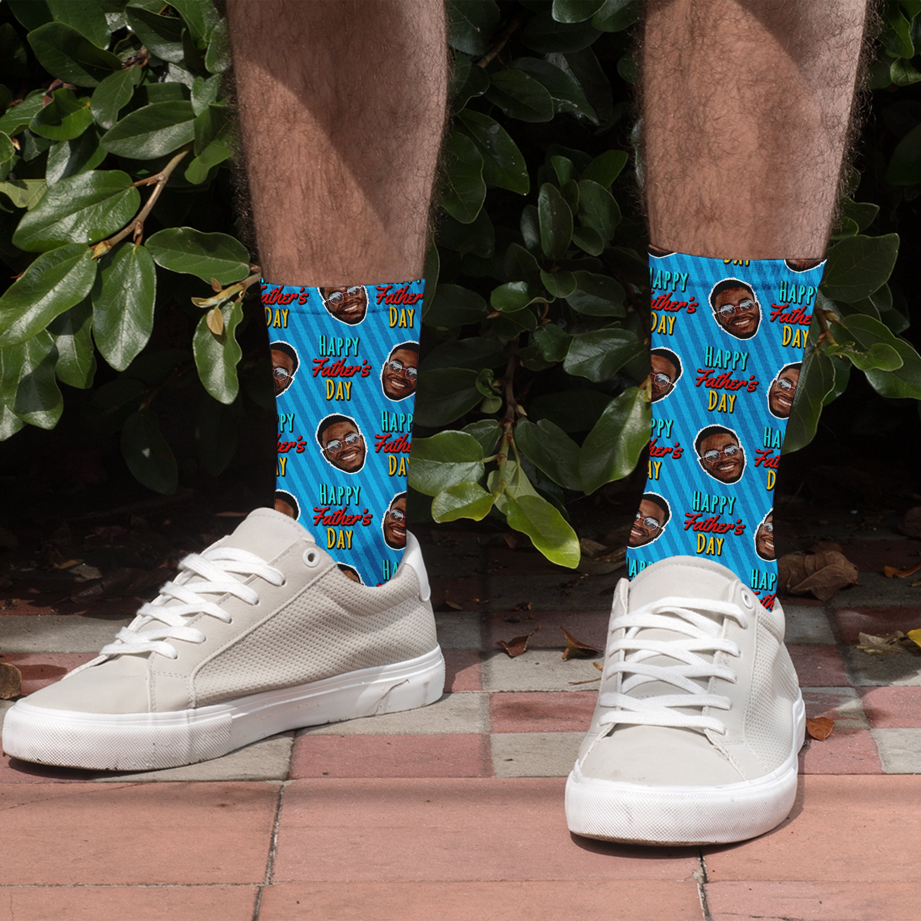 These socks aren't just another pair to add to Dad's collection, they're a daily reminder of the love and laughter you share. Whether he's lounging at home or strutting his stuff out and about, Dad will rock his face with pride. Just find that perfect photo of your dad and our team will work their magic!