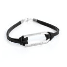 Personalised Men's Shoreditch Silver Bar Black Leather Bracelet