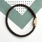 Personalised Men's Woven Leather Bracelet with Rose Gold Clasp