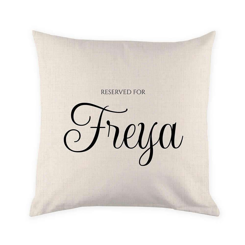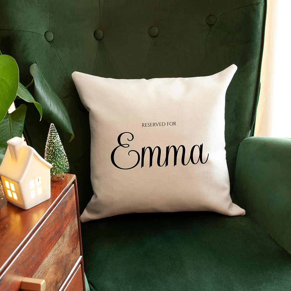 ‘Reserved for’ comes as standard text, with your loved one’s name written in an elegant script font underneath for a truly unique gift they’re bound to love and cherish forever. Our amazing team of artisan creatives will professionally print their personalisation on their cushion cover for beautiful decoration.