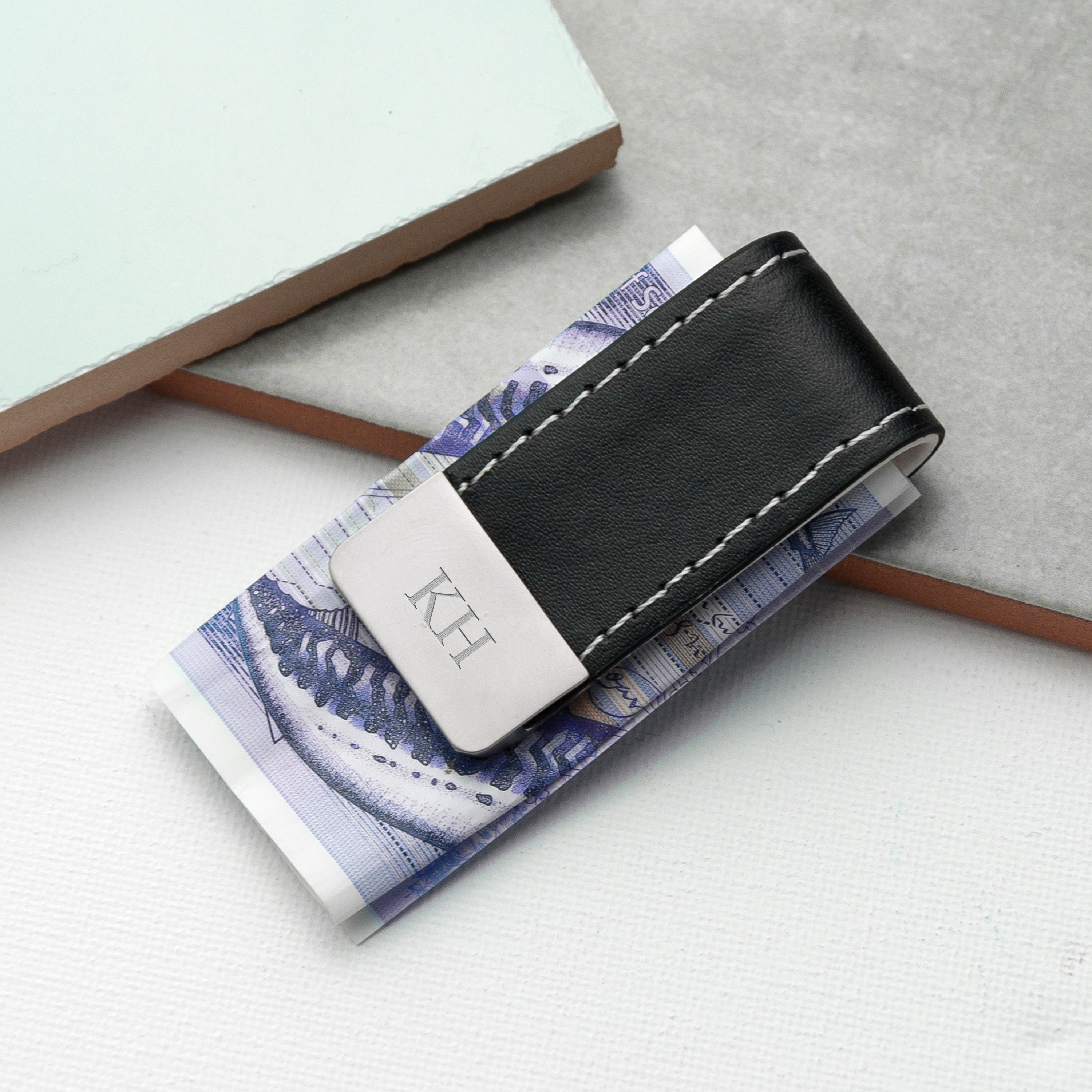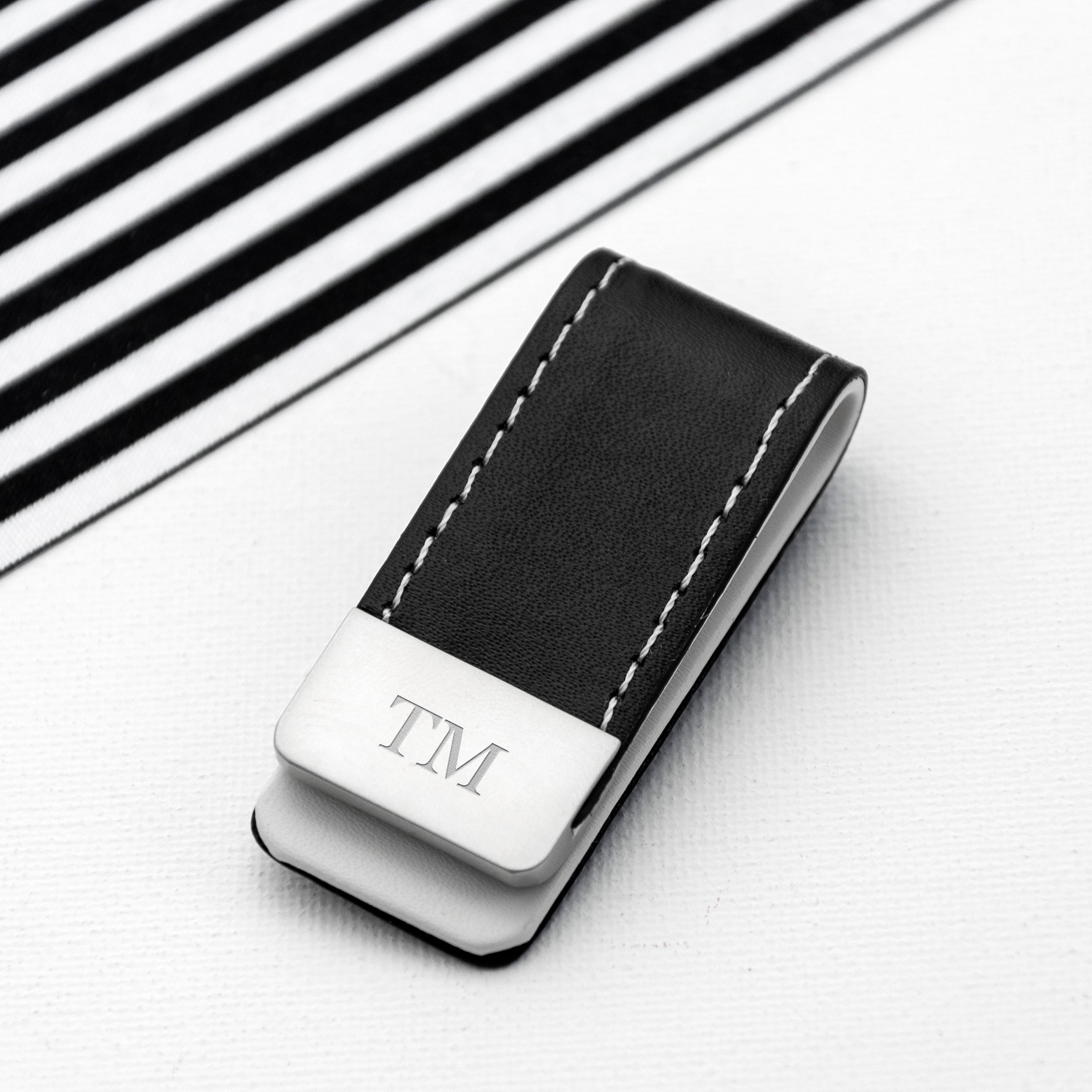 Beauty and functionality come together perfectly in this personalised black vegan leather money clip. This handy money clip is the perfect gift for any man who likes to keep his money together in style, while the sturdy construction ensures that your money is kept safe. It’s a tight and hard wearing stainless steel clip - his money won't be going anywhere!