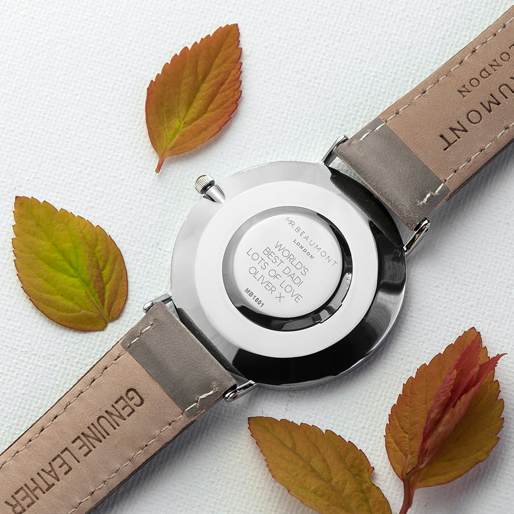 Mr Beaumont Personalised Men's Leather Watch In Ash
