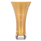 Finished in a rich, luminous gold tone, delicately applied using organic paints, the surface exudes warmth and opulence without overwhelming the clarity of the crystal beneath. The refined silhouette cut design introduces a flowing, contemporary contour that enhances the vase’s sculptural appeal, while remaining tastefully understated. Complementing this design are genuine Swarovski crystals, carefully set into the glass to provide an unmistakable sparkle.