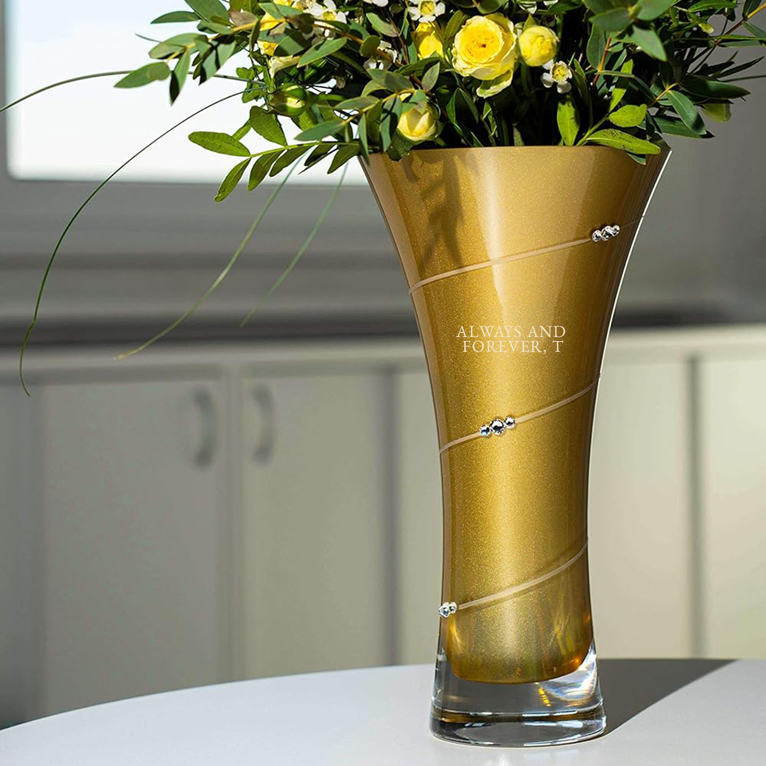 Personalised Gold Hourglass Crystal Glass Vase with Swarovski Crystals