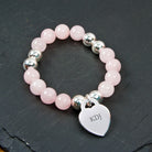 - Personalised bracelet made from pale pink Roze Quartz with silver plated heart.