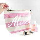 Personalised Bridesmaid White On Pink Striped Cosmetic Bag