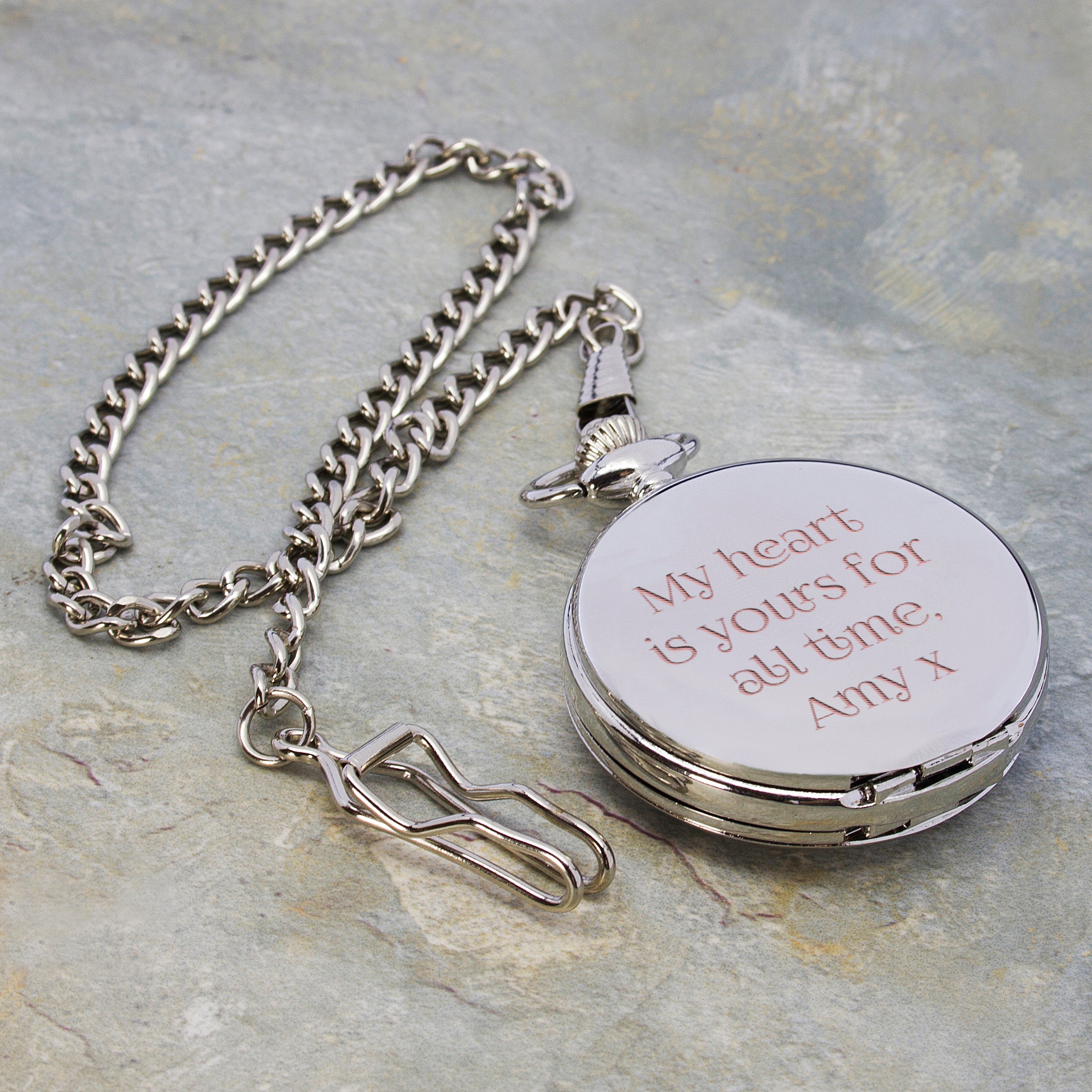 The watch face has the classic Roman numerals adding to the timelessness of this gift. The pocket watch once engraved comes packaged in a smart gift box