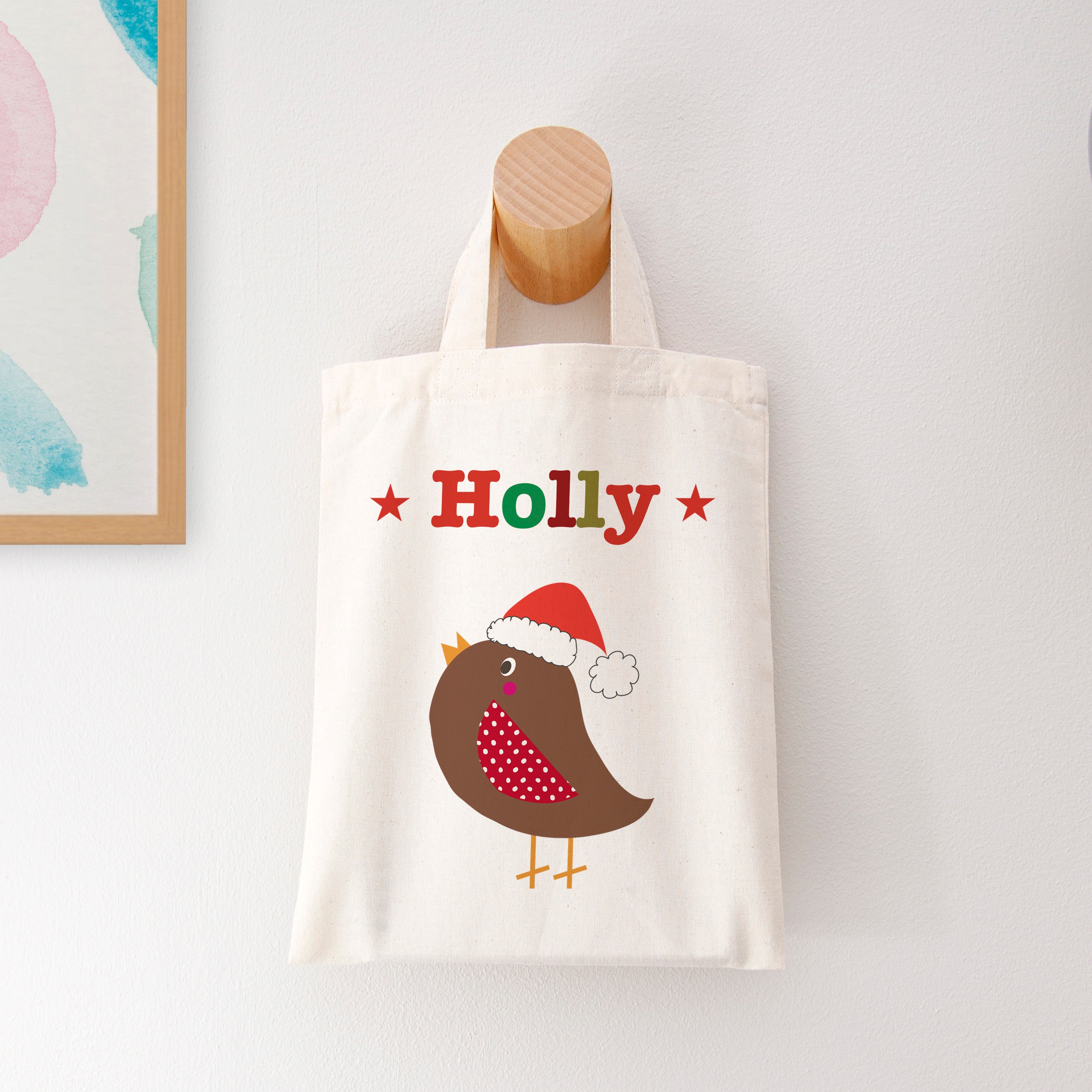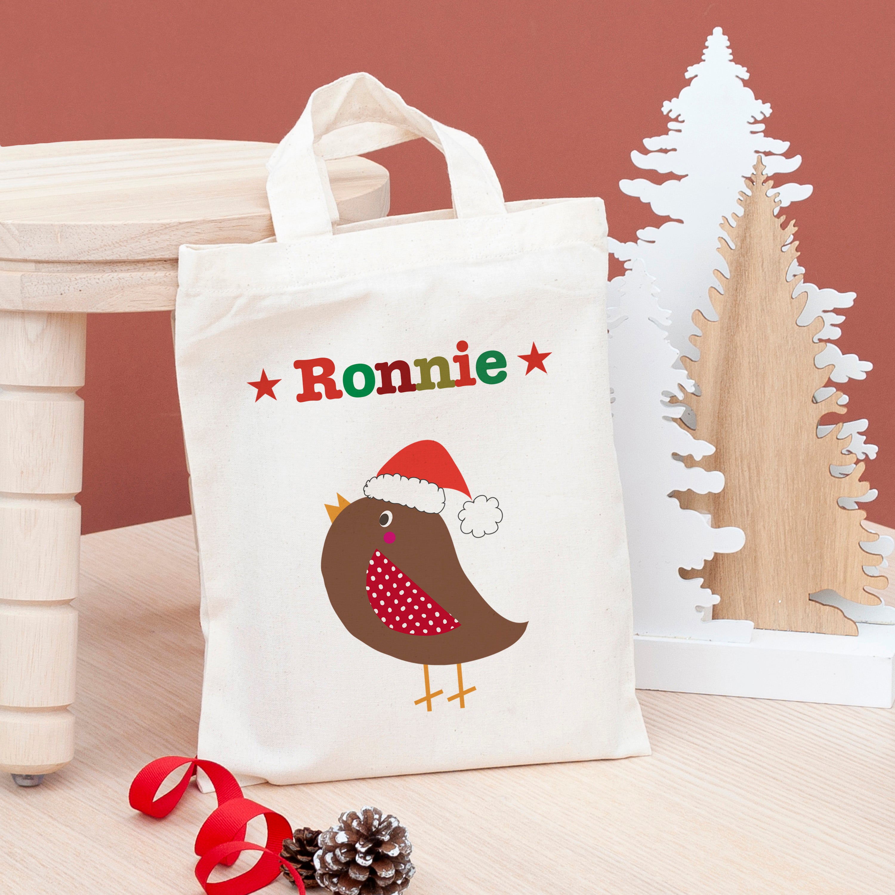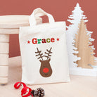 The magic doesn't stop at its enchanting appearance. We'll personalise this cotton wonder with a name of your choice, making it extra special for the recipient. Imagine the joy on their face when they see their own name placed prominently at the top of their very own festive goodie bag!